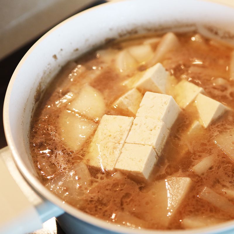 5. 두부를 넣고 한소끔 끓여주면 맑은 소고기뭇국 완성