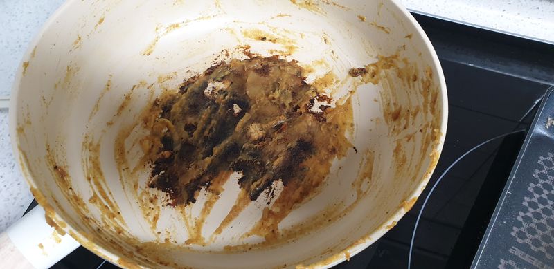 검게 그을려진 후라이팬이 마음 아펐던 요리의 현장을 그대로 보여주네요ㅠㅜ