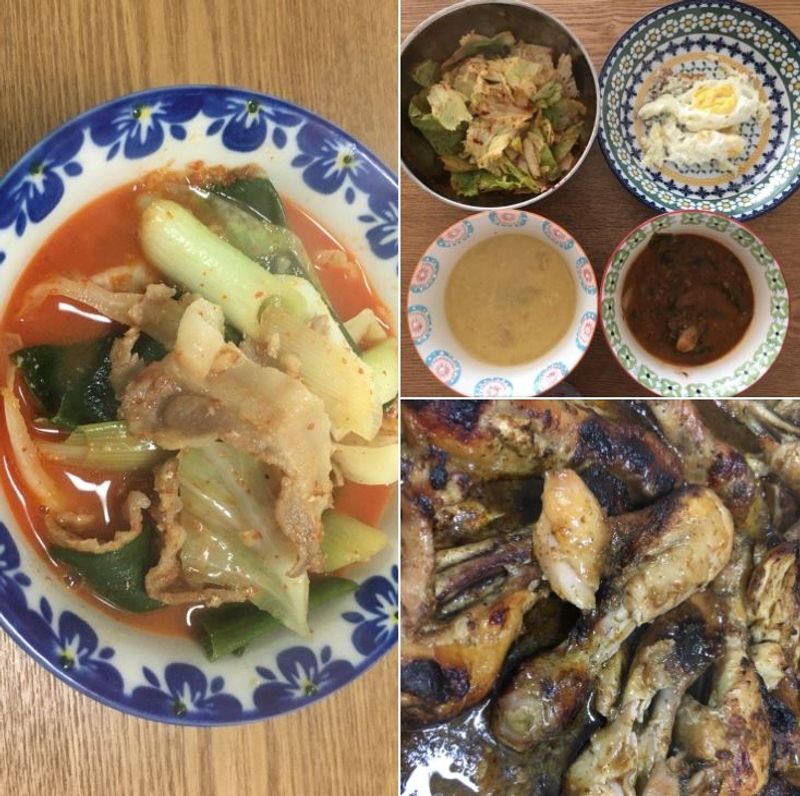 3위. 국적불명시즈닝 닭다리 구이. 닭다리 구이 검색. 올리브오일을 넣으라고? 간만 맞으면 맛있다고? 오호. 집에 있는 조미료 스캔. 케이준 머시기 솔트가 보임. 냄새 킁킁. 이거 넣어야겠다. 챱챱. 굵은소금 챱챱. 간장도 넣고 싶어. 챱챱. 배가 곧 상할 것 같아. 멀정한 부분만 살려보자. 챱챱. 올리브오일, 다진마늘 전부 믹서기에 넣고 윙~~ 숙성을 시키라고? 지금당장 하고 싶지만 랩 씌워서 냉장고에 고고. 하루가 지나고..구워보자. 구워보자. 오오오. 오븐 사용 설명서도 읽어보고 잉? 40분을 통째 돌리는 게 아니네? 중간에 한번 뒤집어 줘야 되는구나. 오호오호. 온 집에 퍼지는 내음새. 하아. 느낌 조아. 퇴근한 남편이 냄새를 맡고 오오, 좋은데 두근두근. 이게뭐야. 다 탔잖아. 이게뭐야. 간이 하나도 안 배었네. 이게뭐야. 배는 왜 갈아넣은거지. 이게뭐야. 케이준 머시기 향밖에 안 나잖아. 향신료 냄새때문에 못 먹겠어. 으아아. 망했어. ㅠㅠ. 여보 난 왜 요리를 못하지? 남편: 괜찮아. 삼겹탕보다는 나아...!!! 아무렇게나 해도 맛있다는 닭다리구이마저 망한 똥손이. 다음에는 어떤 요리를 망칠 것인가. 따흐흑.