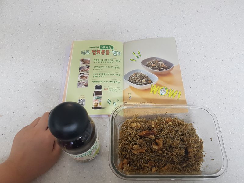 새미네 멸치볶음 양념으로 아이가 직접 전자레인지로 아주 쉽고 빠르게 만들었어요 맛도 너무 맛있다고 이거 밥도둑이네 하면서 밥한공기 뚝딱했답니다