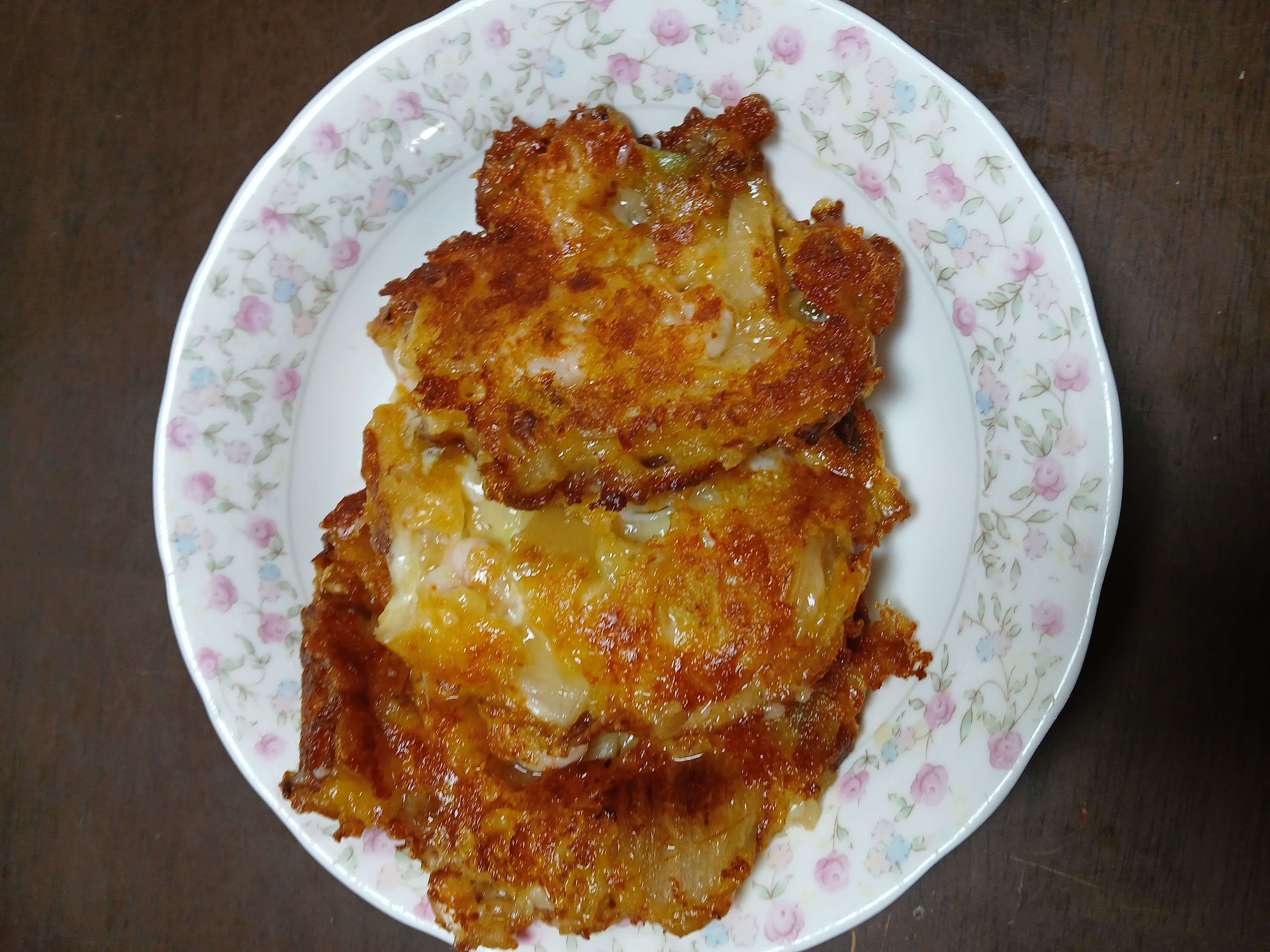 3;기름을 두르고 새우치즈김치전을 노릇노릇하게 구워주
