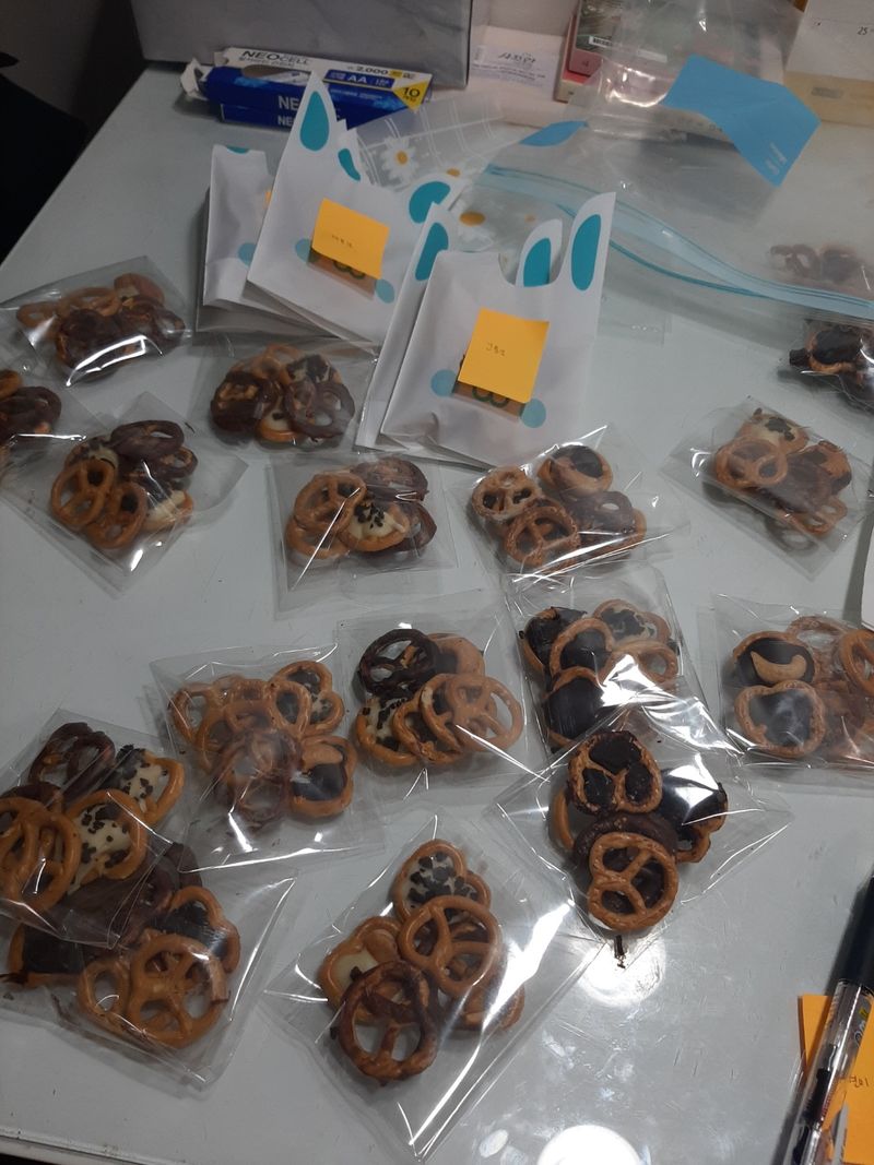 프레첼과 코인 초콜릿을 이용하여, 귀엽고 간단한 선물용 초코 프레첼 만들기.
