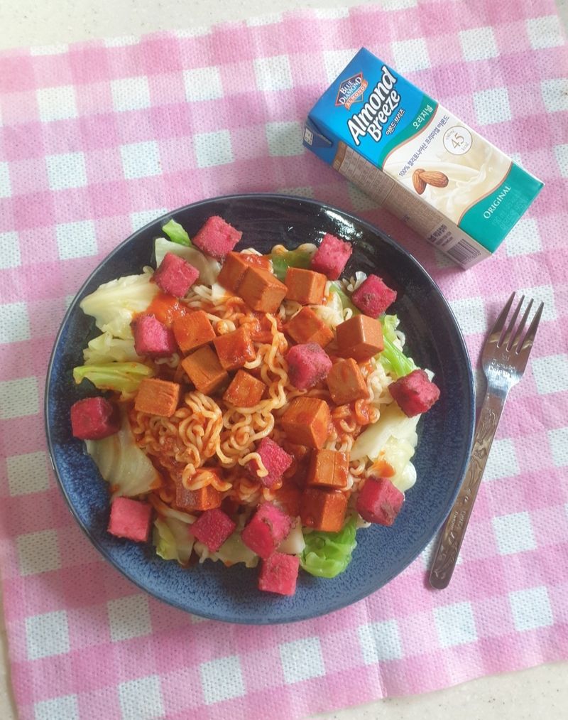 양배추와 큐브참치, 냉라면을 만드는 샐러드