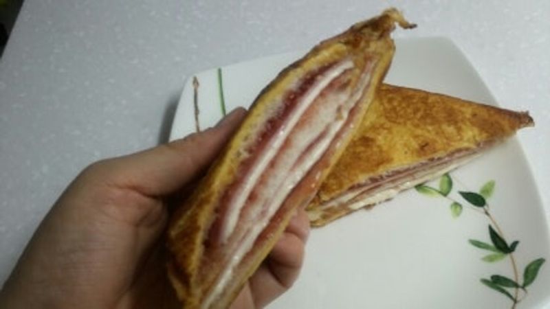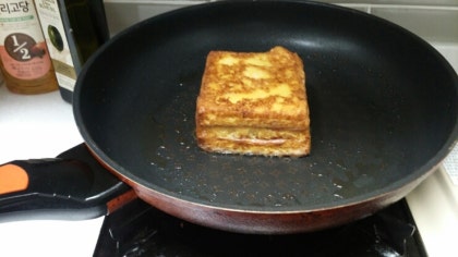 아이는 햄을 엄마는 빵을 아빠는 치즈를 좋아하는 우리가족♡ 모두의 입맛 취향을 담은 토스트와 함께하는 홈파티 ! 빵에 햄깔고 치즈깔고 계란물입혀서 노릇노릇 구워내면 치즈쭉 늘어나는 햄치즈토스트 완성!