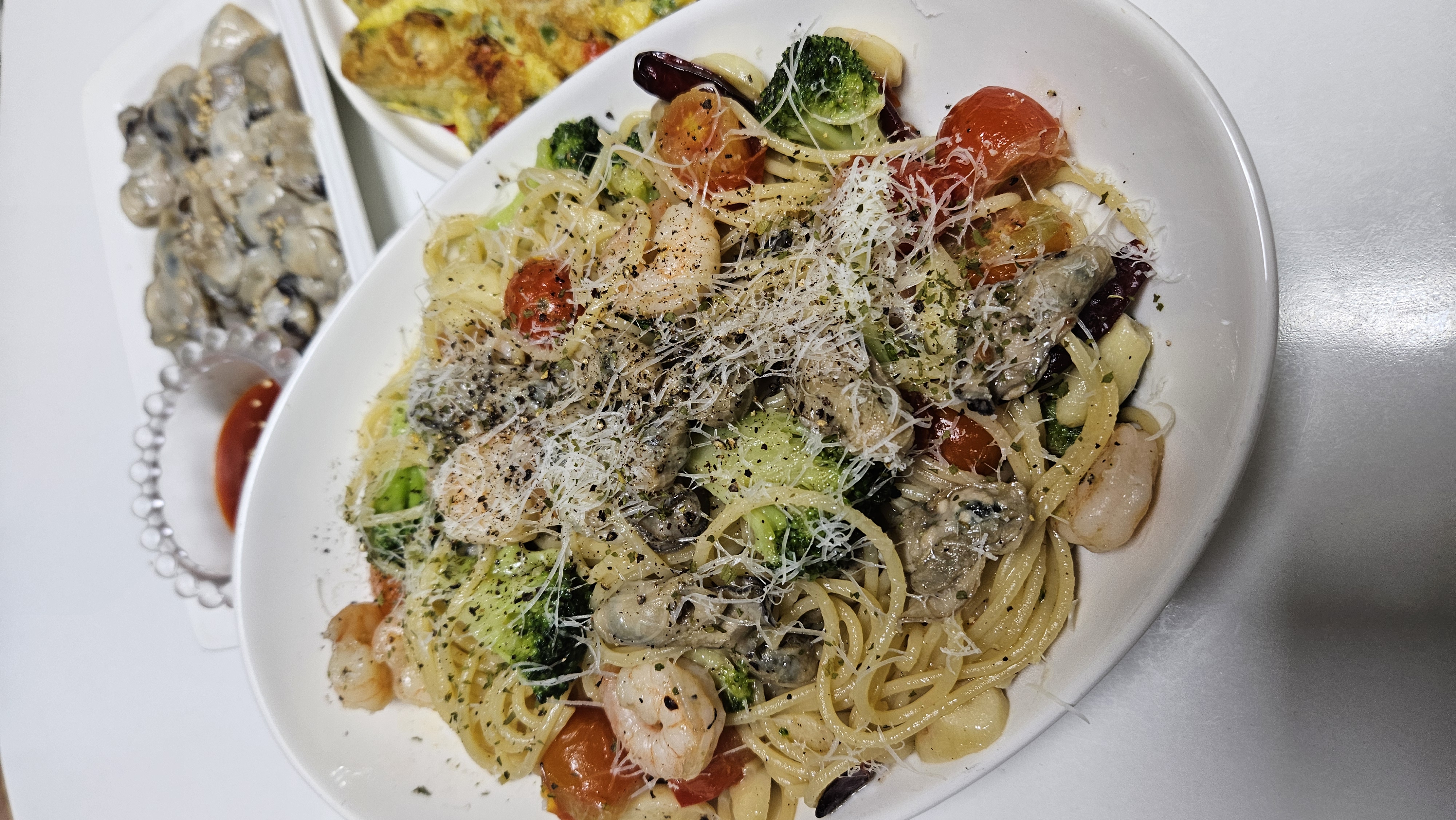 감바스에 파스타면이 빠질수 없죠!! 올리브유 소스에 파스타면까지 삶아 넣으면 굴새우 감바스 파스타!!! 크리스마스나 연말에 연초에 제철 굴로 만든 감바스