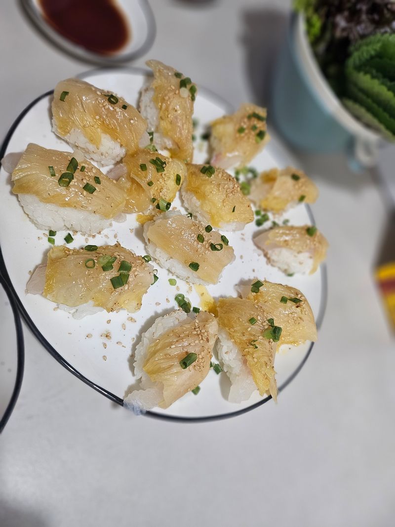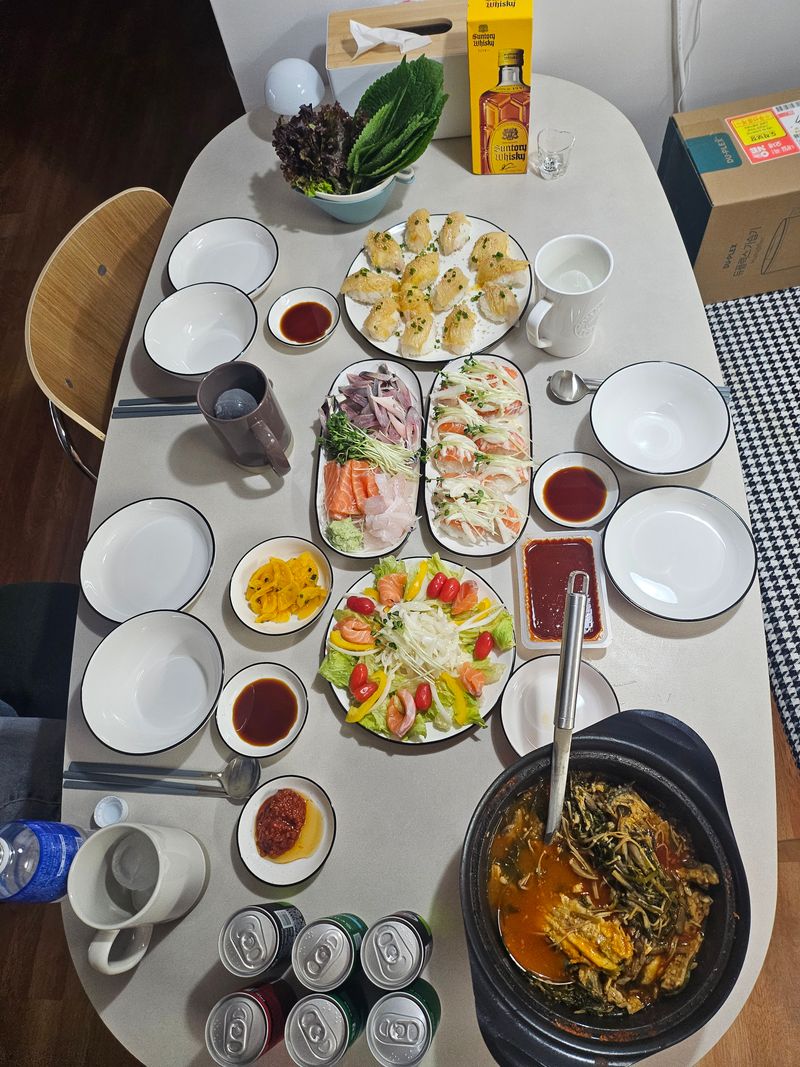 그래도 친구들을 위해 열심히 조무락조물락 요리를 해보았아요!! 초밥 단촛물도 처음 만들어봤는데 밥을 뭉치려니까 손에 다 달라붙고 장난이 아니였어요ㅠ 그러다 손에 물을 묻히고 하니까 좀 더 괜찮더라구요. 우여곡절끝에 친구들 오기전까지 요리완성했어요!! 다행히도 다 맛있다고 해줘서 너무너무 뿌듯했네여 ㅎㅎ 다음엔 좀더 멋있는 요리를 해봐야겠어용