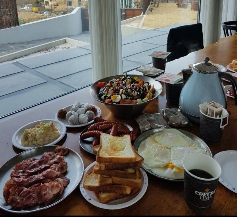 잘 안 보이지만 샐러드 맛나보여요 ~~ 저 메뉴들이랑 커피랑 브런치 느낌으로 딱이네요 ><