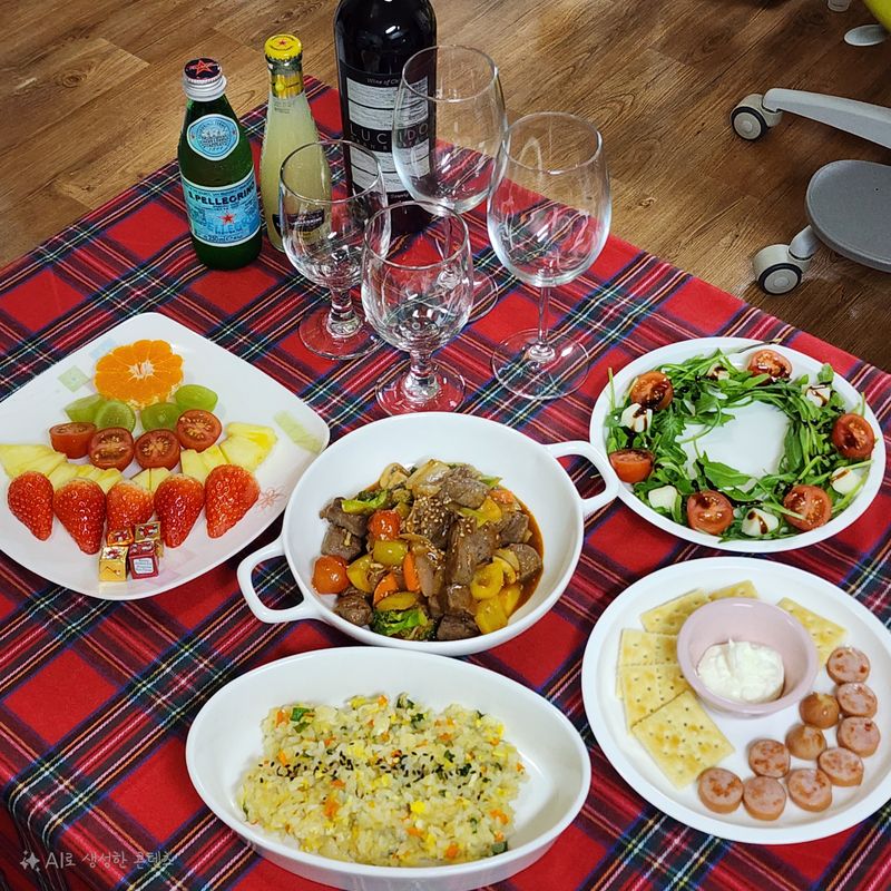 크리스마스 이브 홈파티 상차림 입니다.