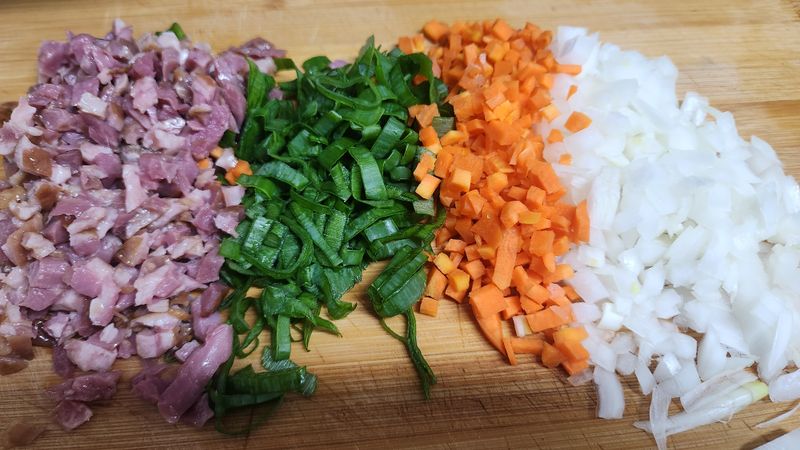 야채들 다져서 볶고 만두랑 같이먹으면