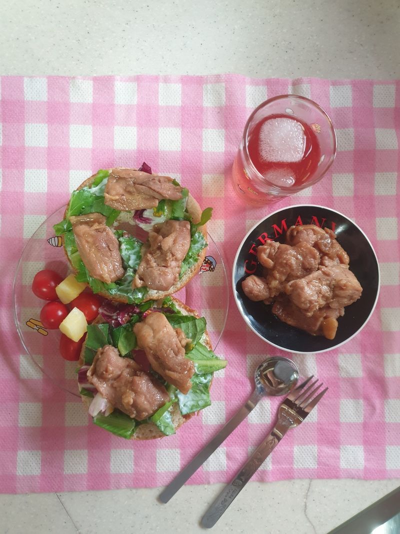 간장양념으로 만든 닭고기를 베이글에 올려 즐기는 브런치 파티~