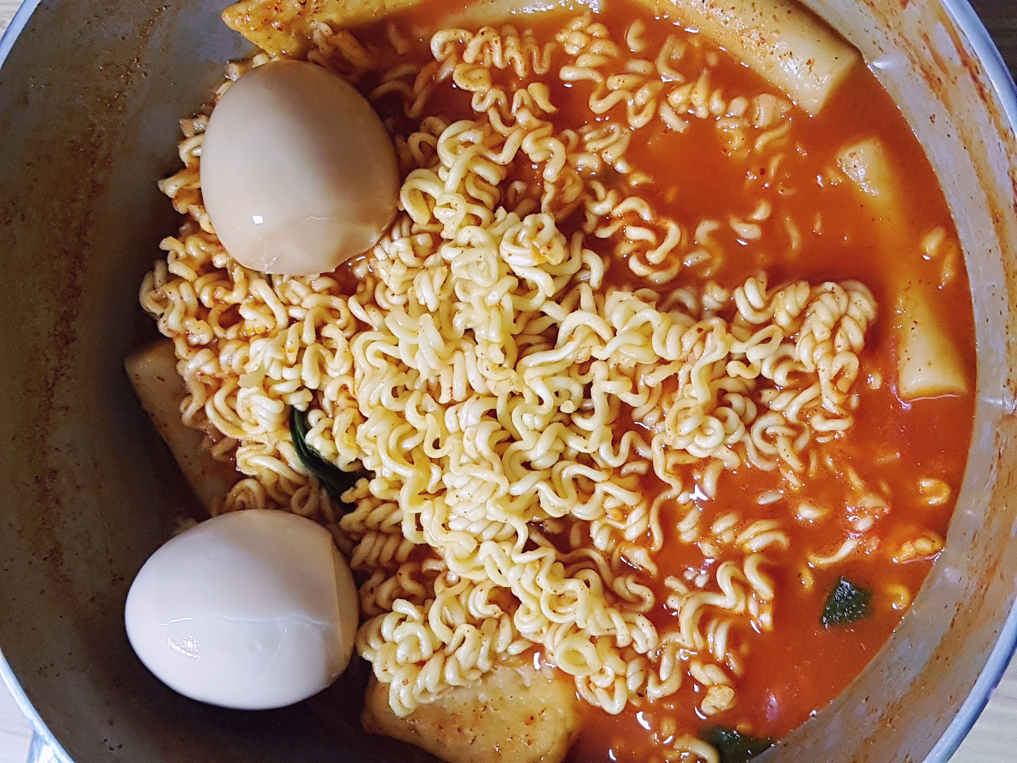 남은 떡볶이에다가 구운 계란하고 라면 넣고 라볶이 했는데 어찌나 맛있었던지.. 숨 쉬는 법을 잊었네요