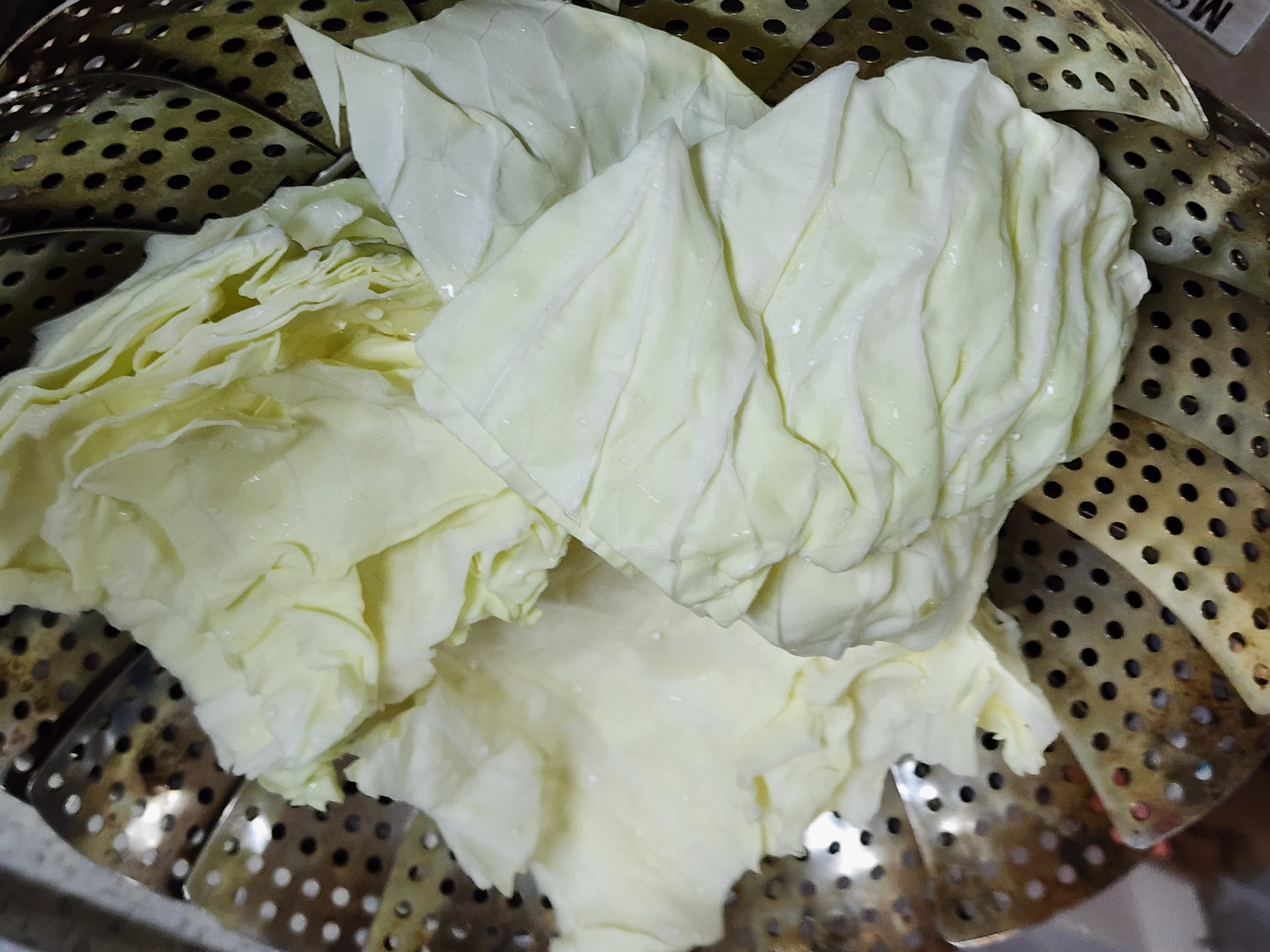 양배추 사방을 자르고 겉부분과 맨 위 사각부분은 찜용으로 먹고