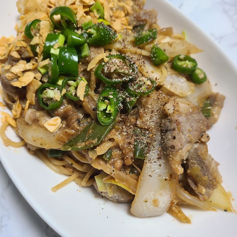 고기는 대용량으로 사서 소분해두고, 야채류는 그때그때 사서 이용하는 편이에요. 특히 버섯류는 가격이 늘 저렴하고 맛있어서 자주 애용합니다. 자주 해먹는 냉털요리는 역시 파스타! 어떤 재료를 써도 맛있어서 자주 해먹습니다. 사진은 된장 삼겹 파스타입니다. 된장소스에 삼겹살과 양파와 고추, 마늘칩을 곁들여 요리해봤는데 아주 맛있었어요!