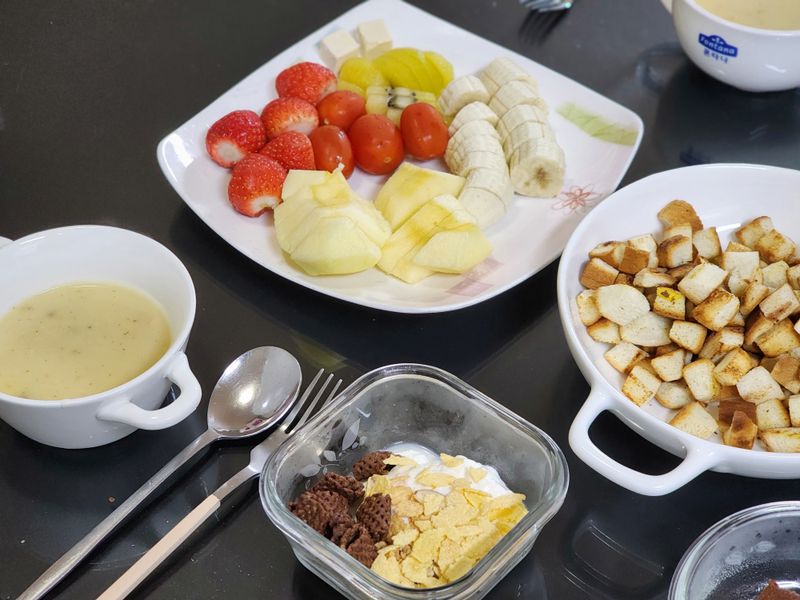 샌드위치 먹고 남은 테두리는 크루통 만들어 스프와 함께