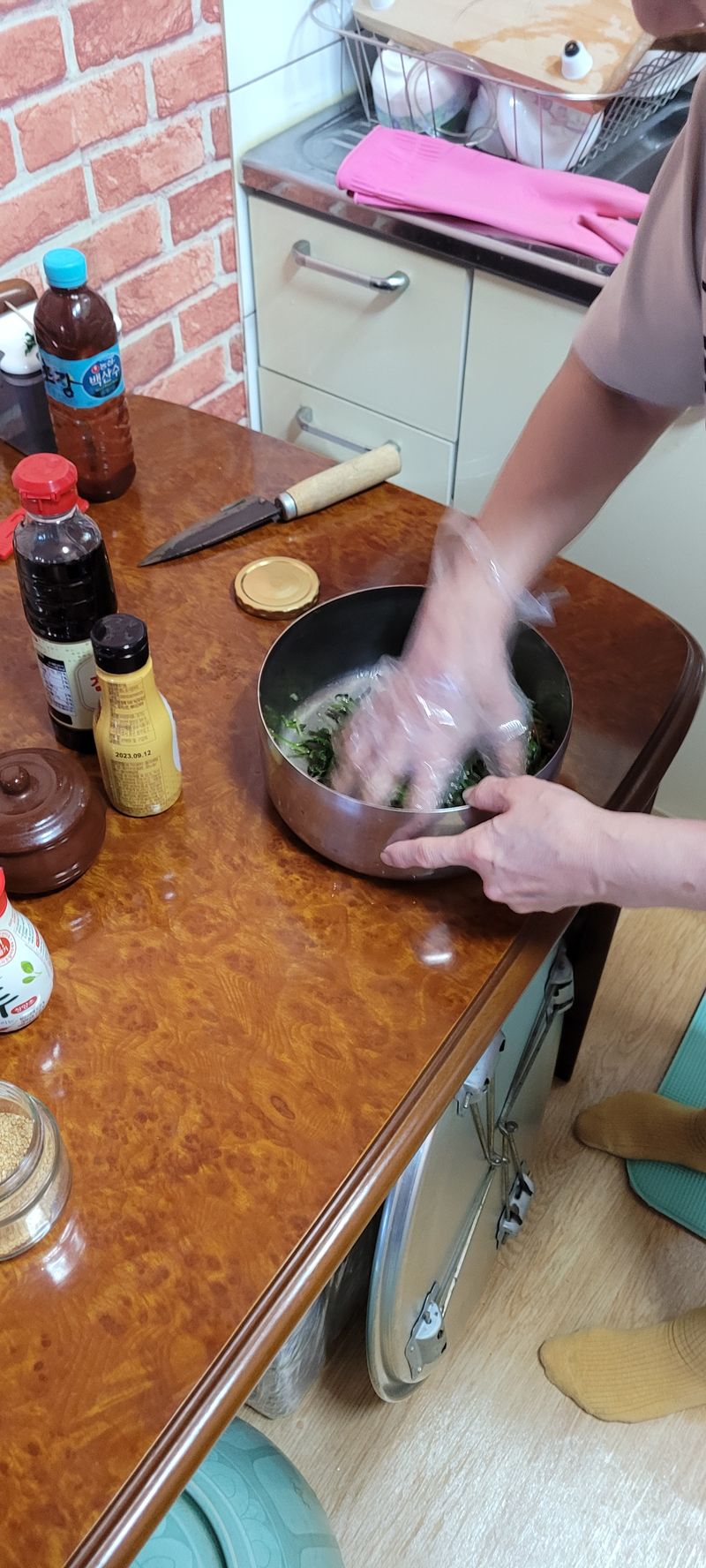 준비한 재료를 넣고 손으로