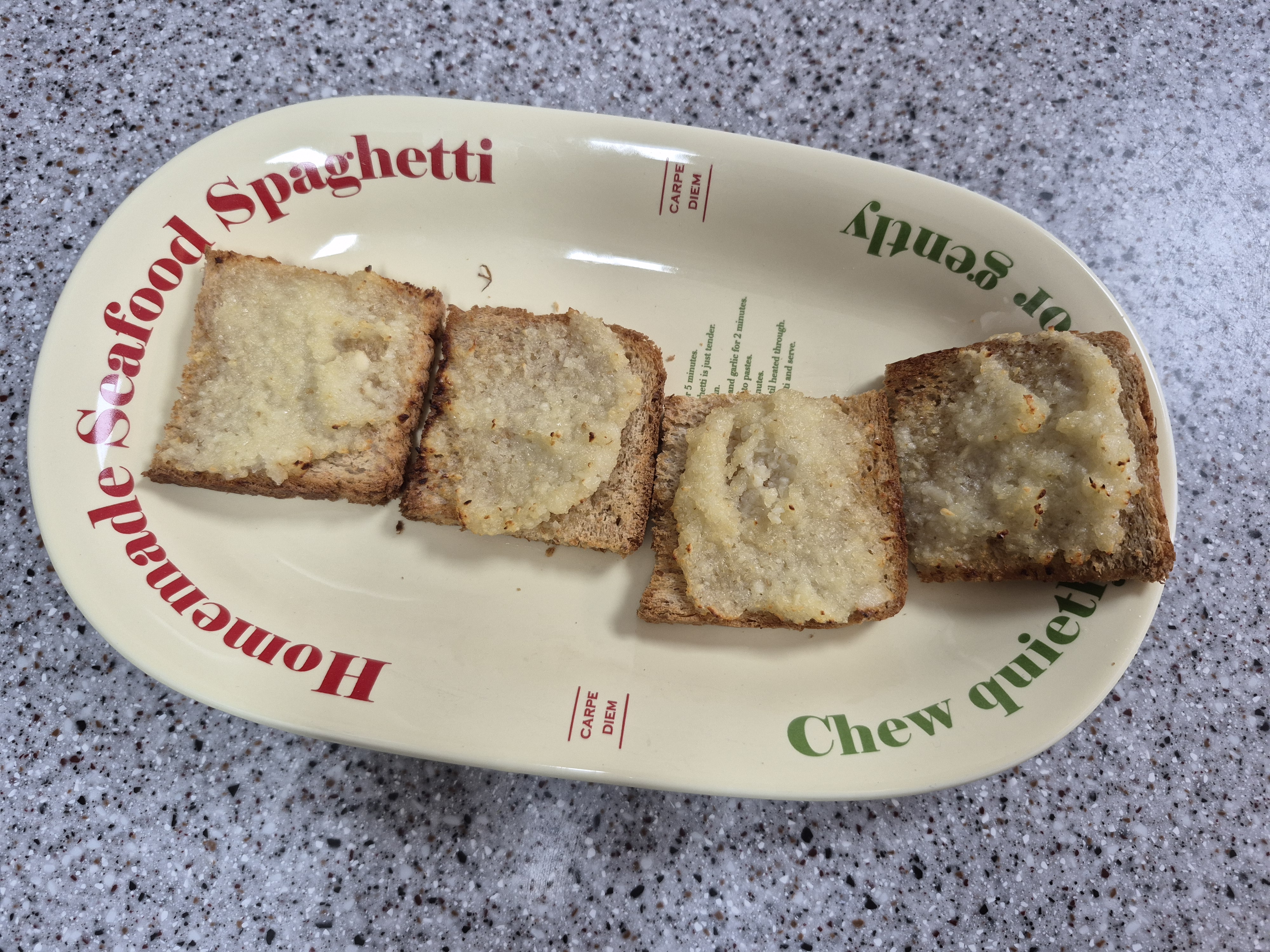 에어프라이기로 간단한 마늘빵을 만들어 보았습니다 버터1: 다진:마늘2:설탕2 를 잘 섞어준 뒤, 준비한 빵에 발라 에어프라이기 180도에서 3~4분 돌려주면 아주 간단하게 만들 수 있습니다!