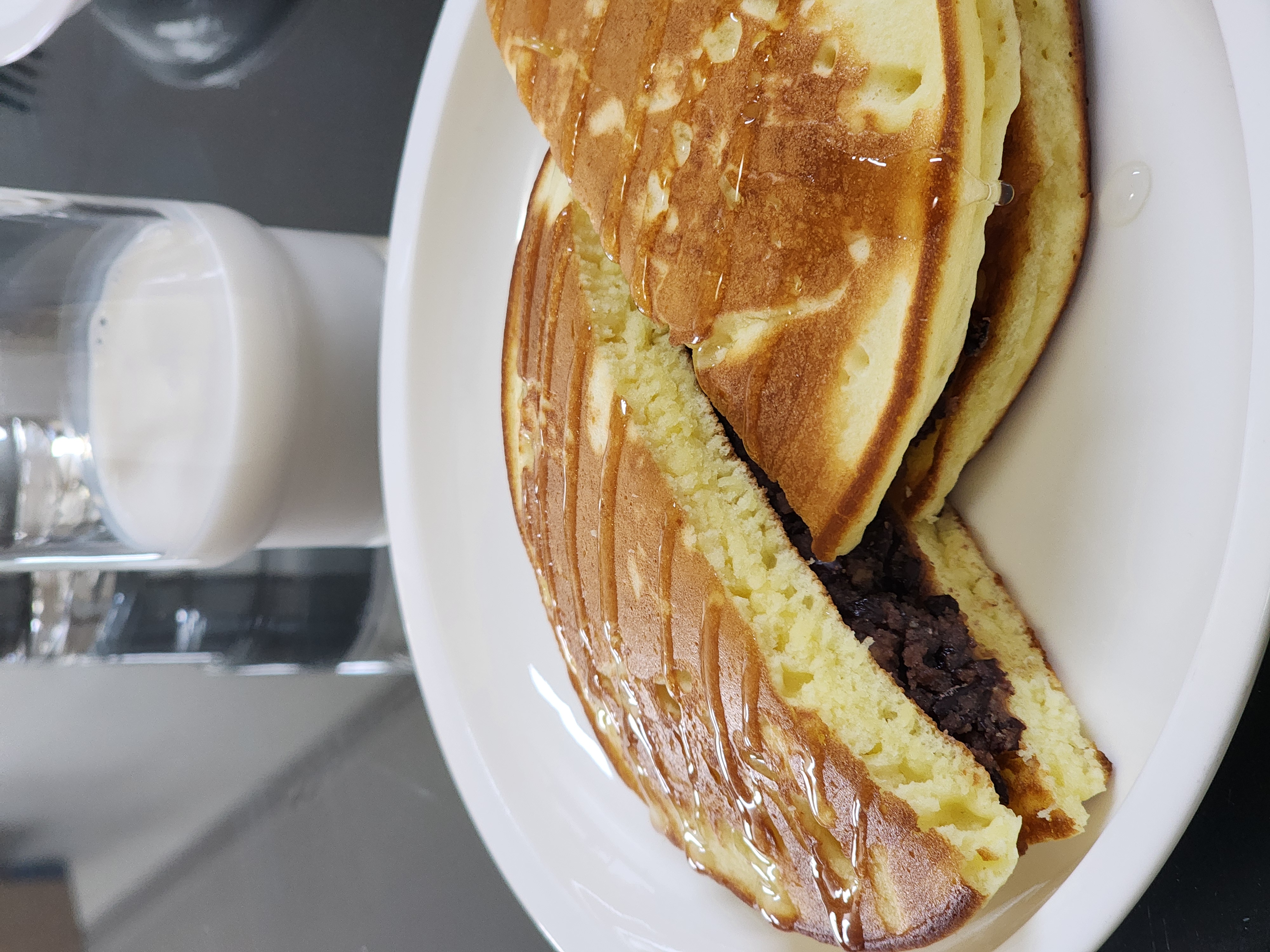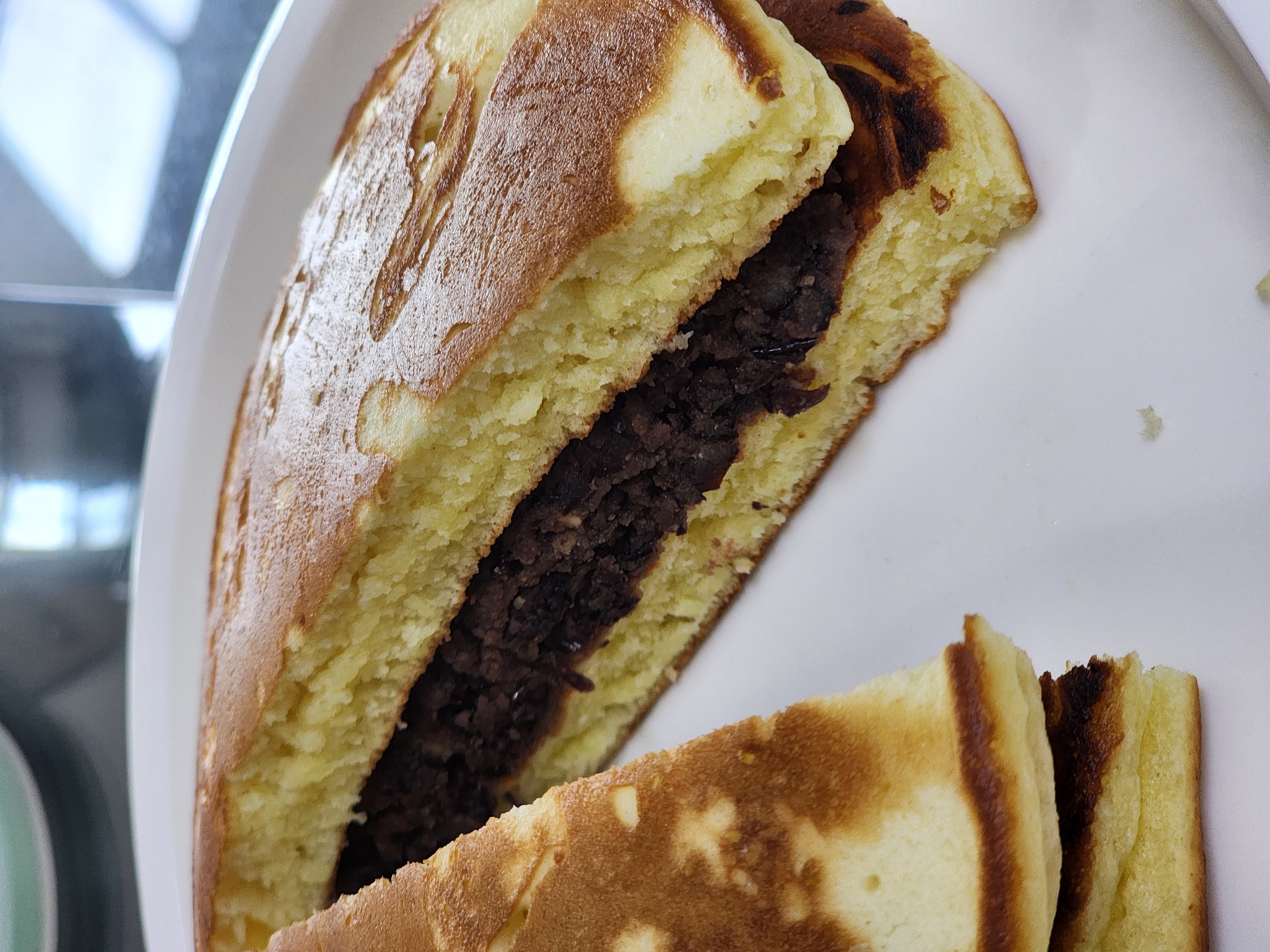 수수팥떡 고물이 너무 많이 남아서 새알을 만들어 굴려먹을까 어쩔까 고민하다가팥고물에 따뜻한물과 올리고당을 살짝 넣어 팥앙금으로 변신시킨다음 핫케익 구워서 사이에 넣어먹으니 또 색다른 맛이었어요. 흡사 붕어빵 같기도 하고요. 남은팥고물로 거의 두끼를 해결했네요. 남은 팥고물있으면 이렇게도 한번 드셔보세요.^^