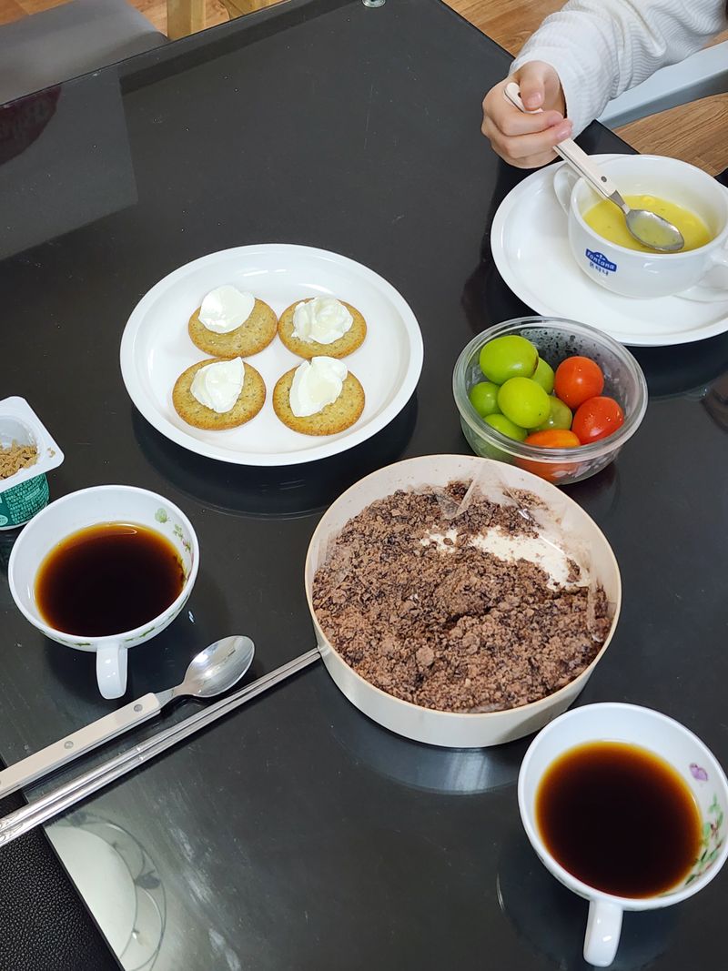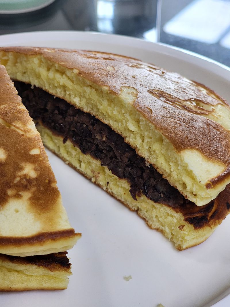 수수팥떡 고물이 너무 많이 남아서 새알을 만들어 굴려먹을까 어쩔까 고민하다가팥고물에 따뜻한물과 올리고당을 살짝 넣어 팥앙금으로 변신시킨다음 핫케익 구워서 사이에 넣어먹으니 또 색다른 맛이었어요. 흡사 붕어빵 같기도 하고요. 남은팥고물로 거의 두끼를 해결했네요. 남은 팥고물있으면 이렇게도 한번 드셔보세요.^^