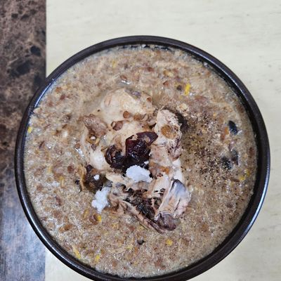이걸 두부 반 모+참깨 1T+오일5T+식초5+소금+후추해서 믹서기로 윙윙~~
