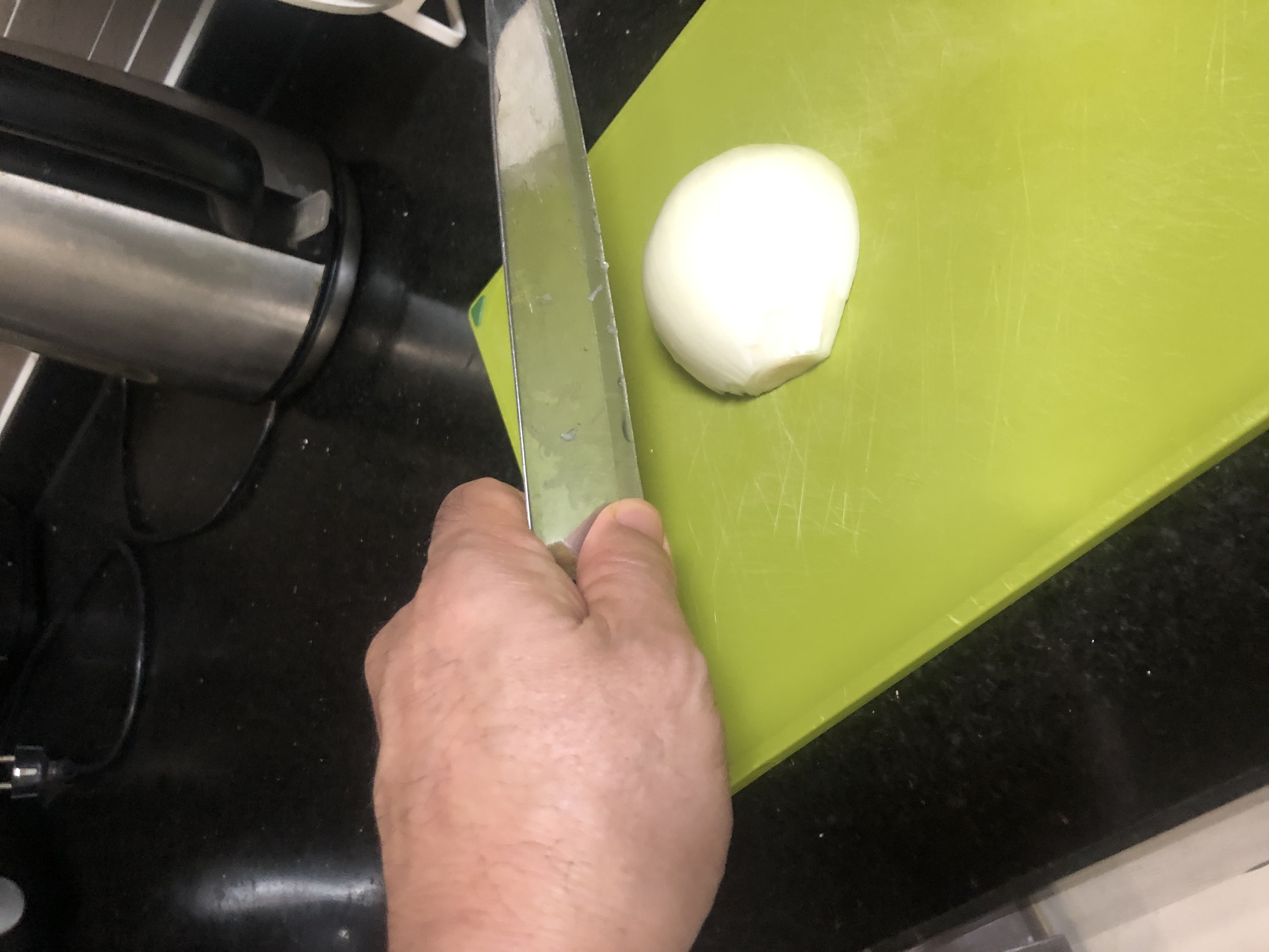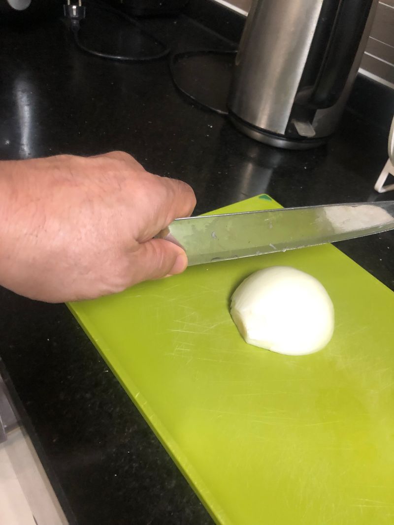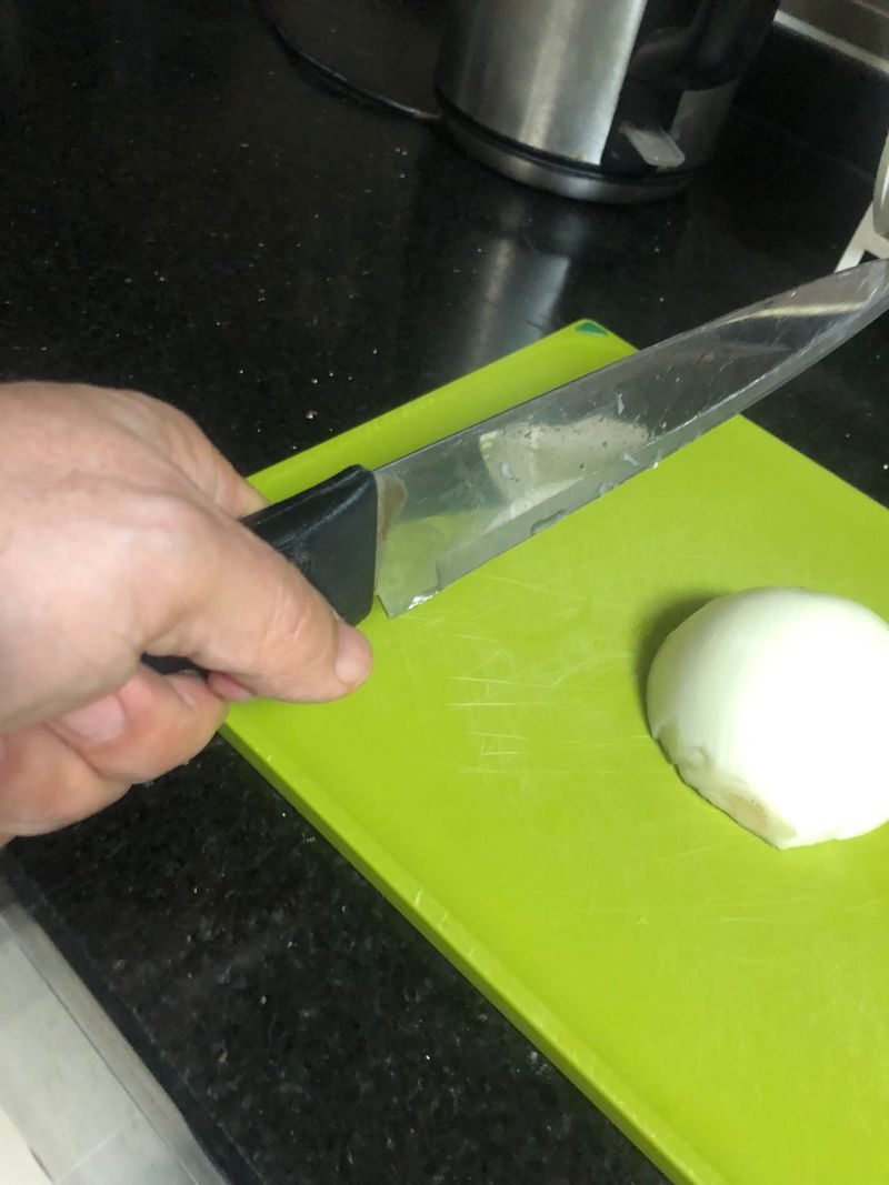칼을 제대로 잡으니 칼이 돌아가지 않고 안정적으로 재료를 자를 수 있었습니다.