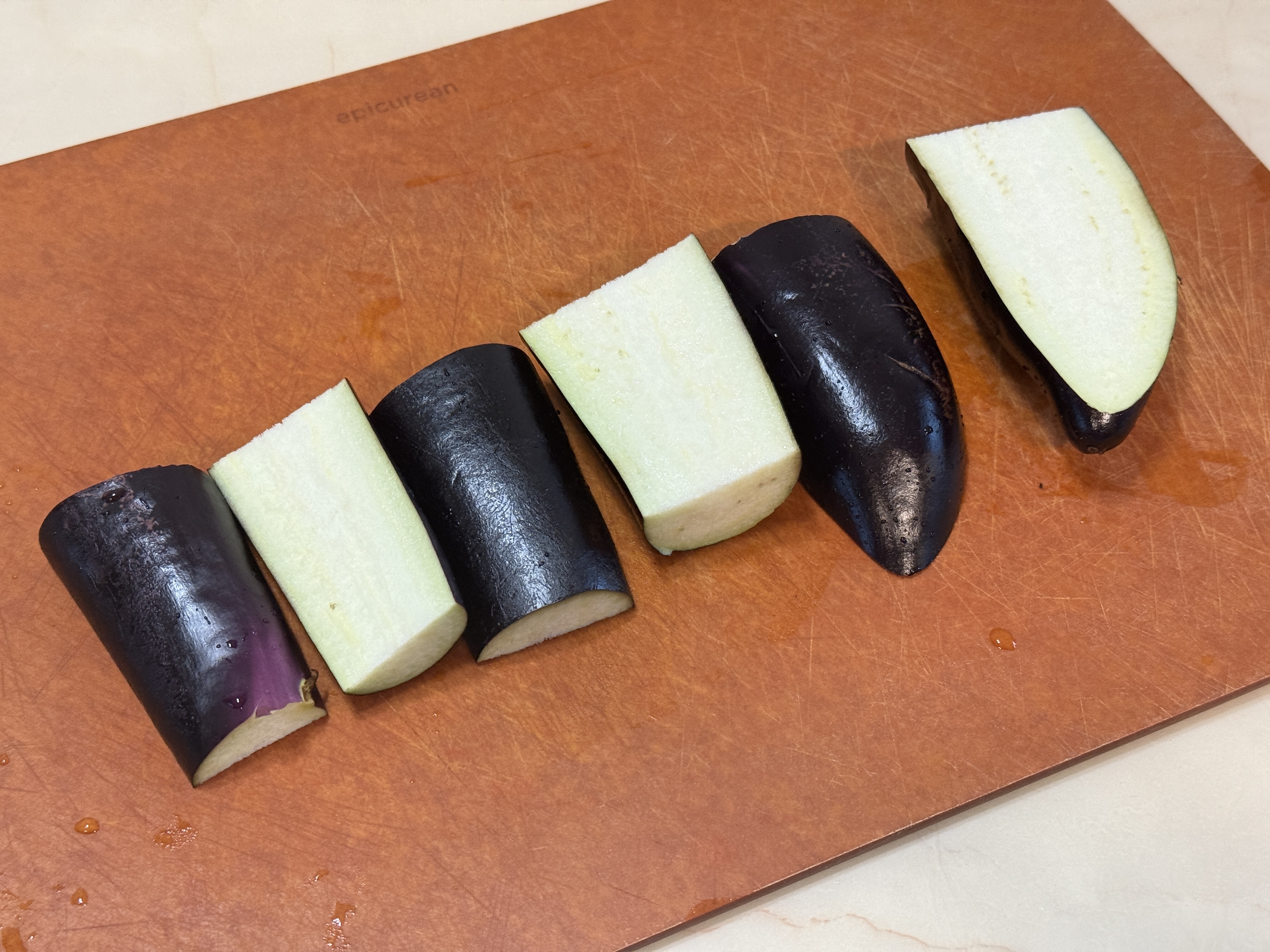 🔹 가지와 양배추 모두 짜장에 넣을 것이라 깍둑썰기를 선택했어요. 가지는 새미네 재료손질에 나온대로 먼저 삼등분을 한다음에, 반씩 나눠주고 길다랗게 잘랐어요. 그런다음 깍둑썰기를 하닉까 미끄러지지도 않고 아주 편하게 잘 썰리더라구요. 양배추는 가운데 심이 있어서 자르기가 조금 힘들었지만, 그래도 설명에 나와있는대로 반으로 나눈다음, 심을 잘라나고 가늘게 자른다음 깍둑썰기를 하니 부서지지 않고 모양대로 잘 잘려나왔답니다!!