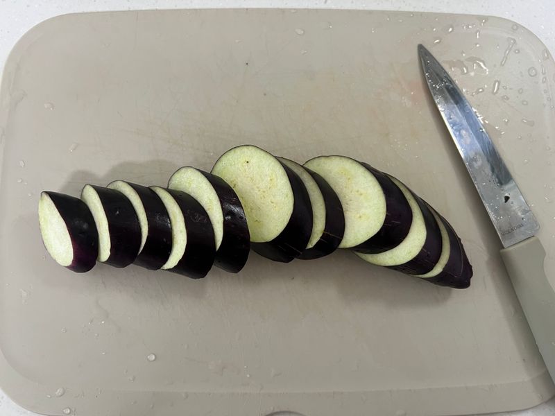 구워 먹을 가지는 살짝 두껍게 썰어봤습니다. 😊