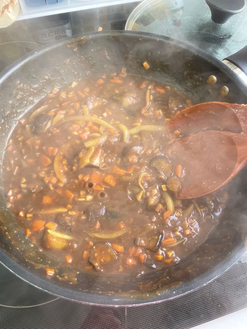 물과 카레가루 섞기 & 재료와 물의 양 1:1 꿀팁!