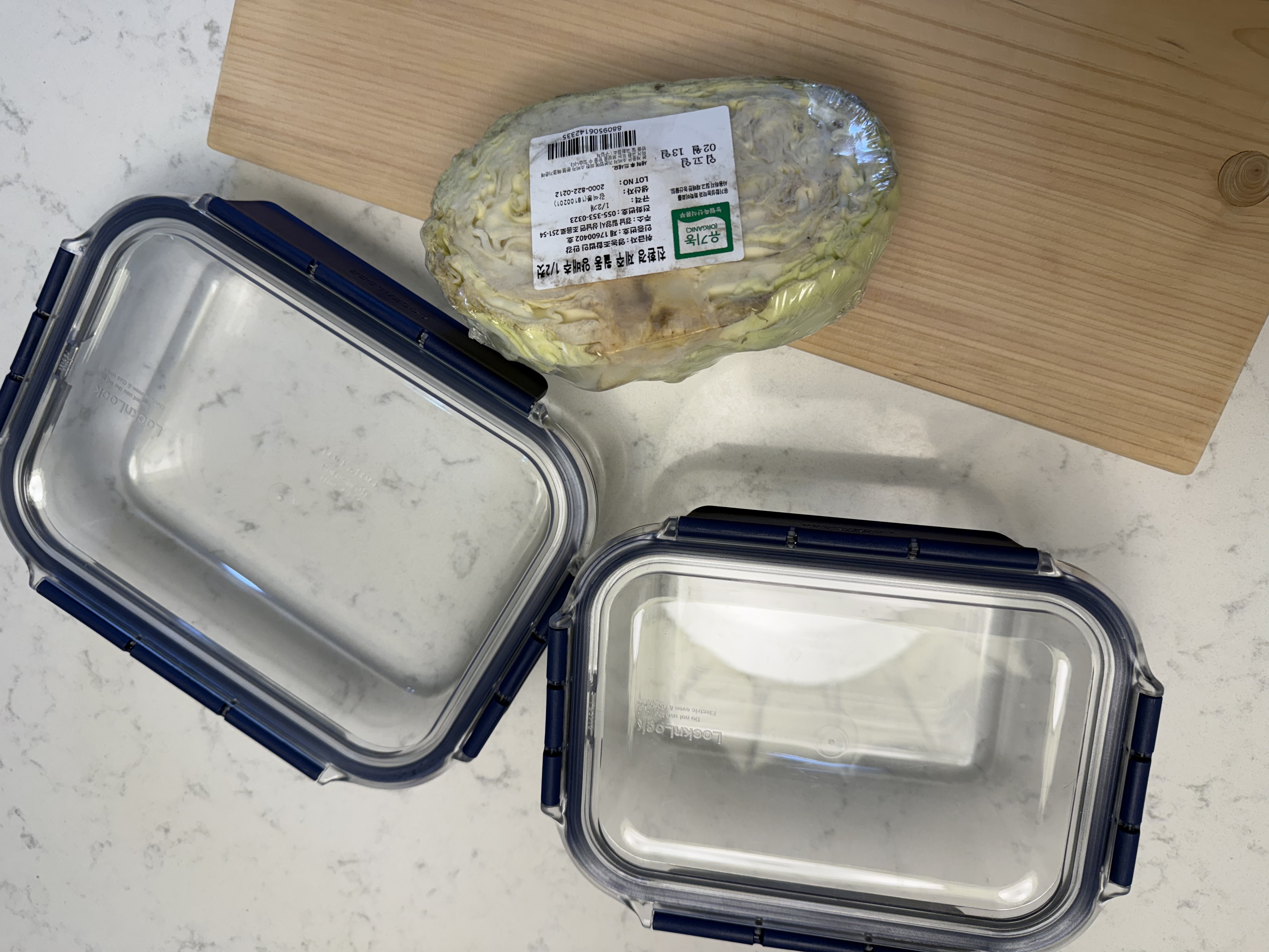 남은 양배추는 키친타올을 물에 적셔 한번 짜 준후, 덮어 랩이나 밀폐용기에 넣어주면