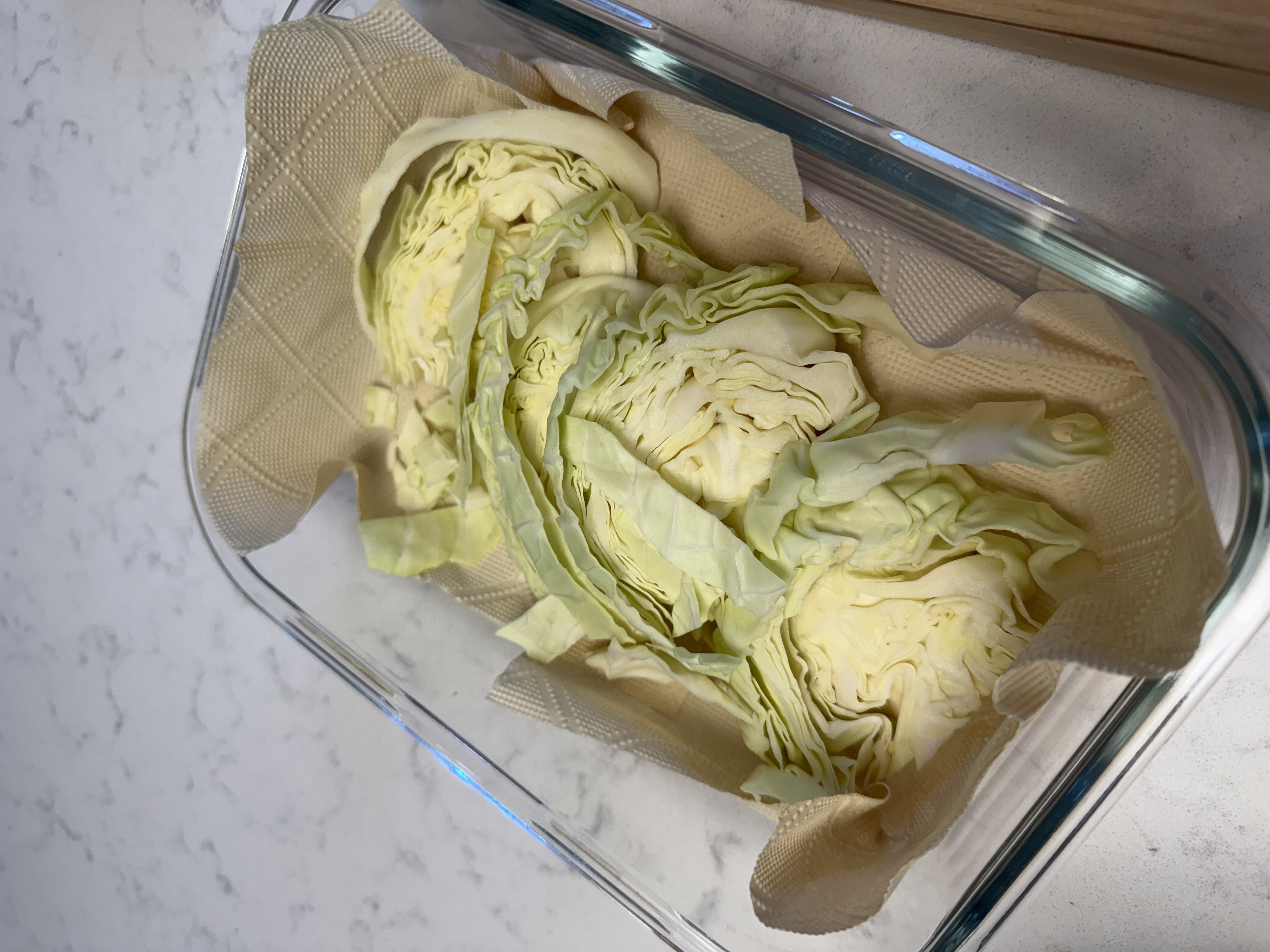 솔루션에 있는 '양배추 보관법'을 보고 키친 타올을 깔아주었고요.