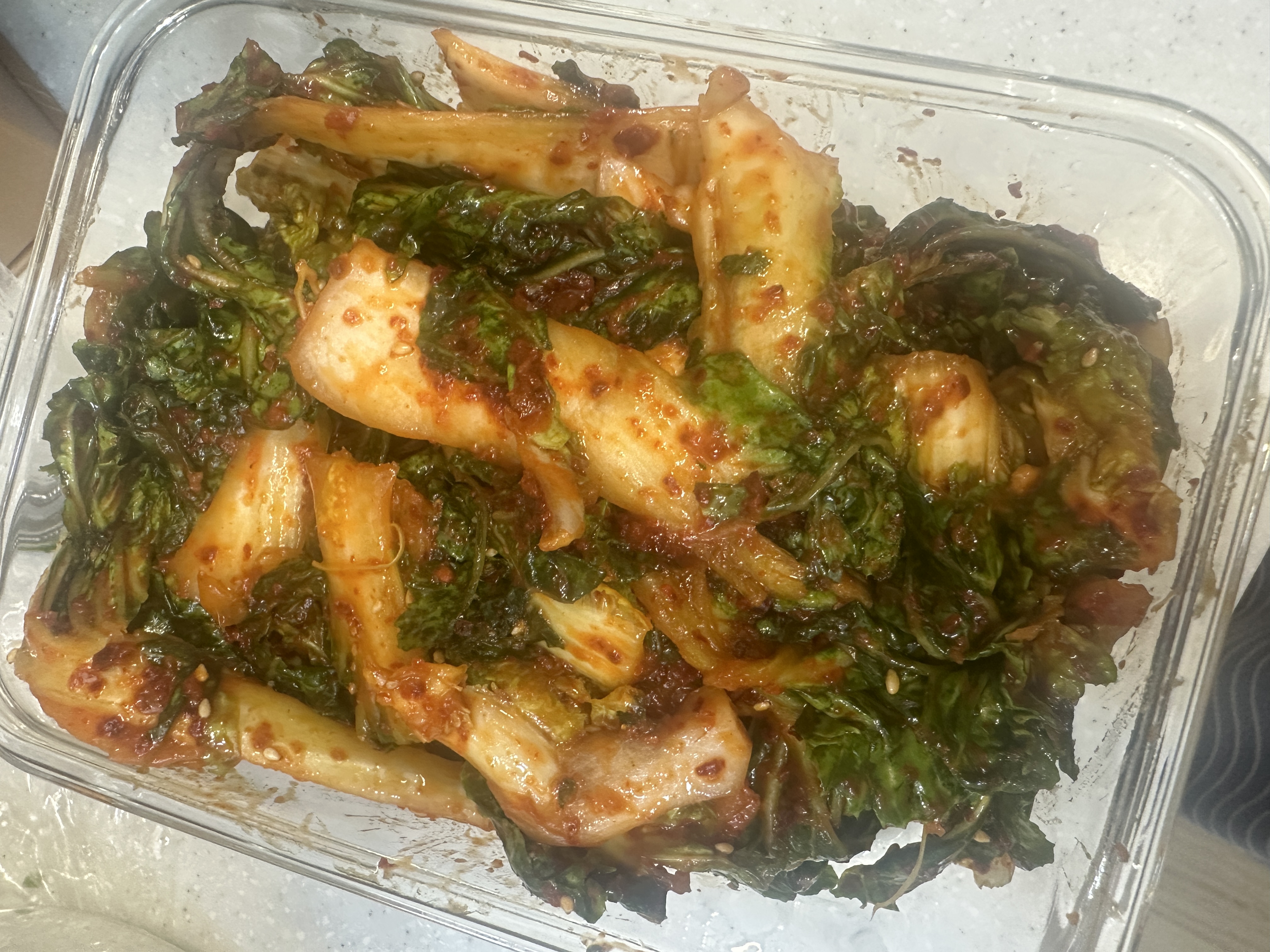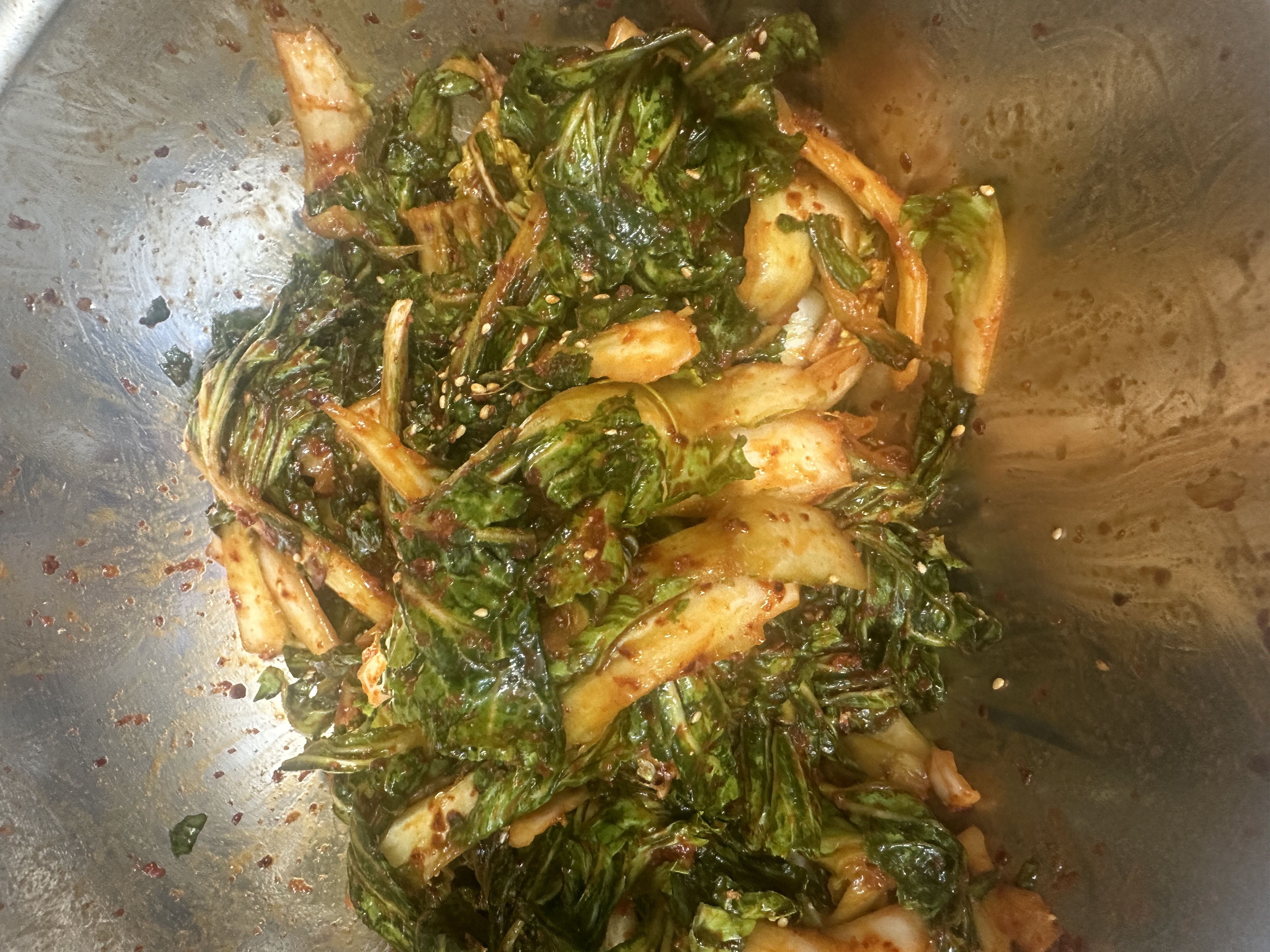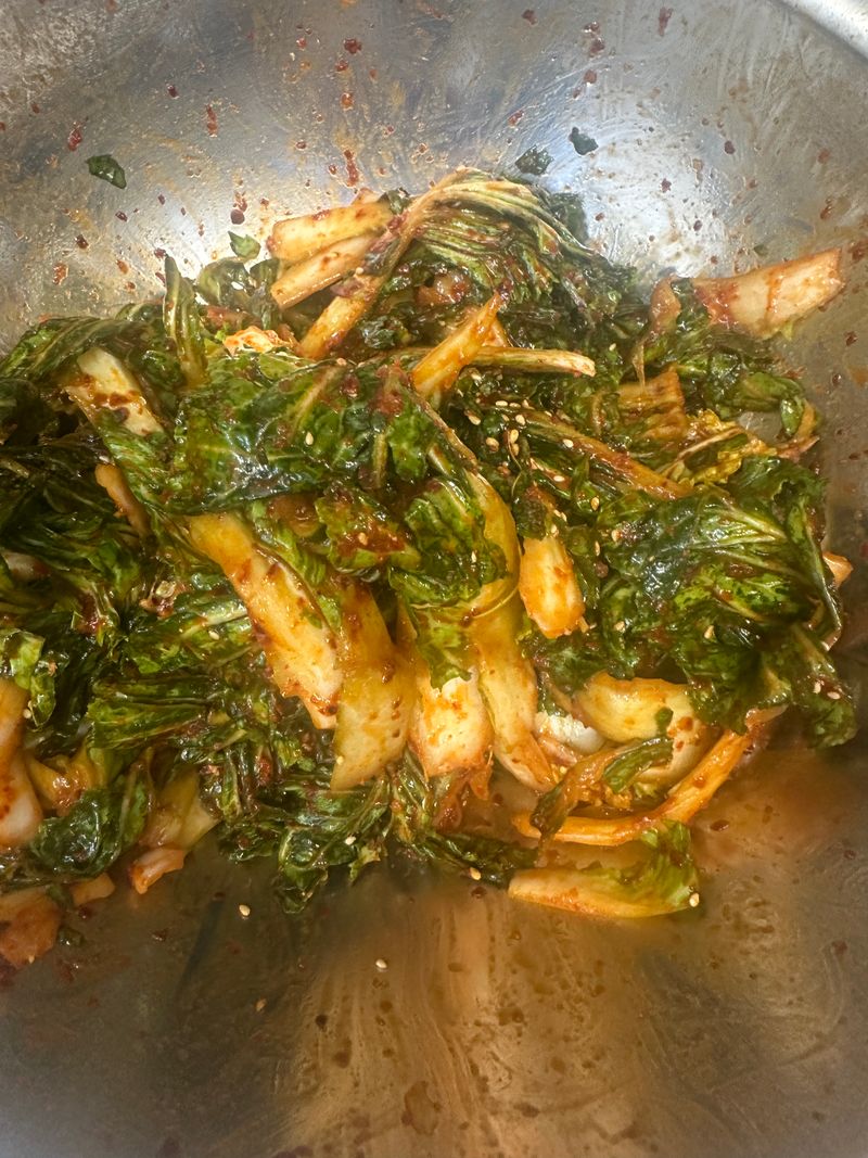 잘 씻어서 겉절이 양념에 무쳐내고 참기름과 깨만 뿌렸는데...