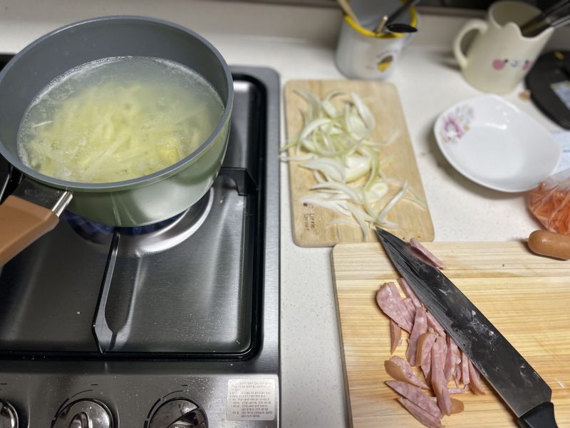 된장찌개 요리하며 먹고 남은 감자와 양파