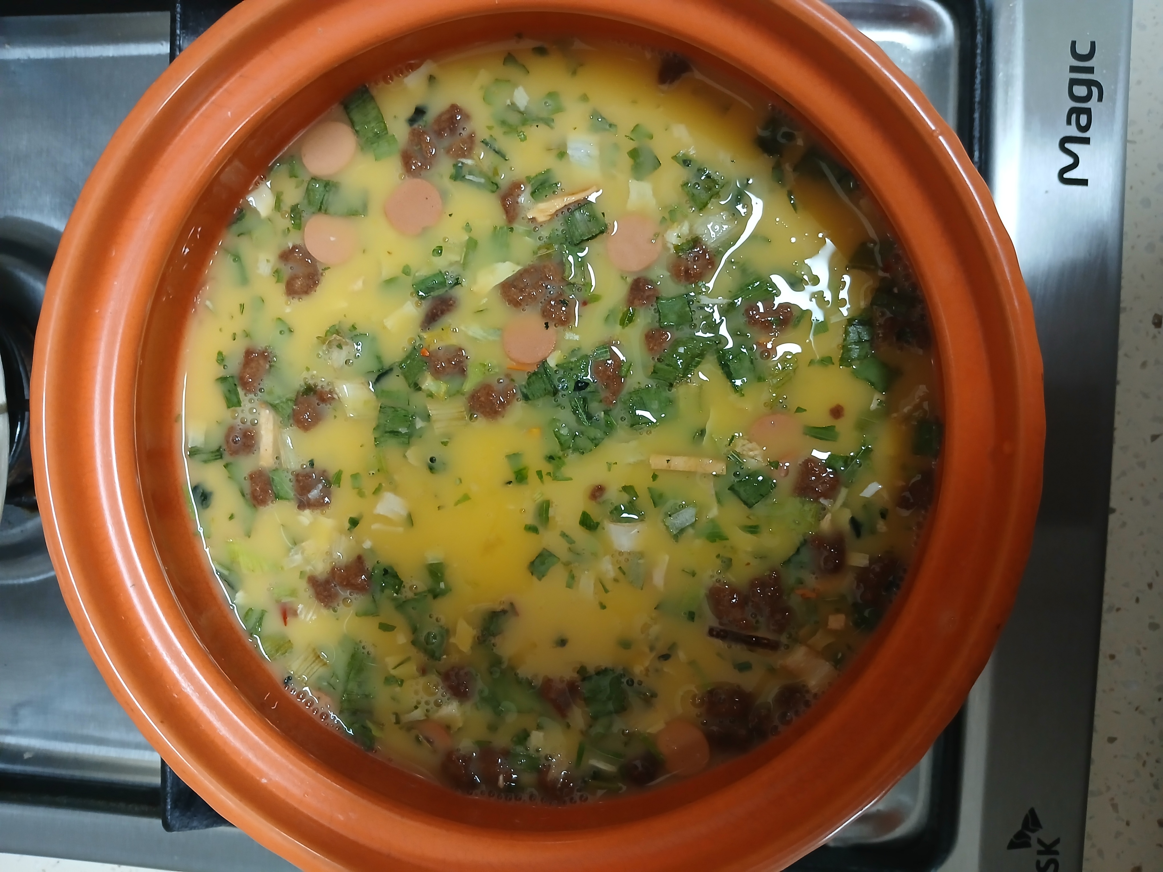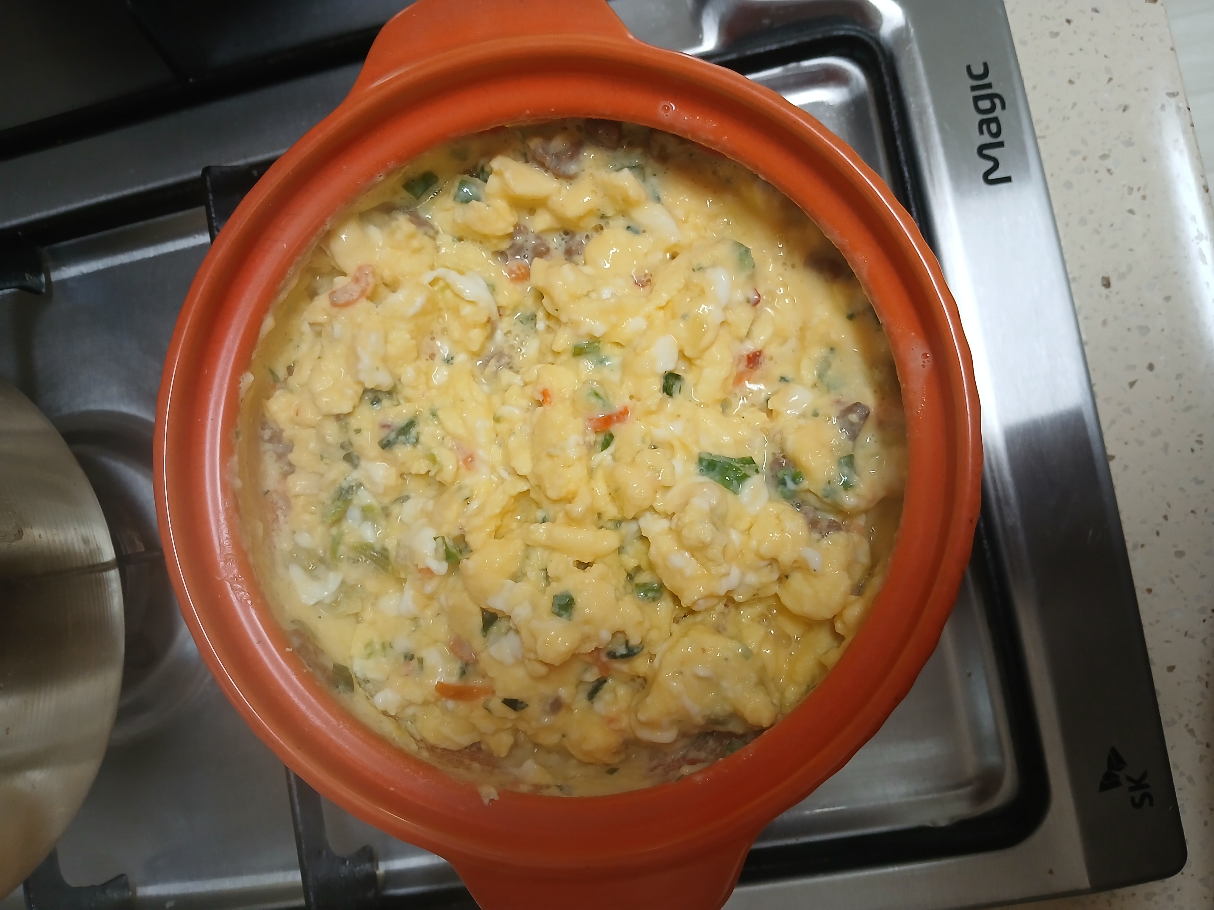 계란 6개, 물 120ml, 연두1스푼반을 넣고 집에 식재로가 똑 떨어져서 라면부셔먹고 모아둔 건더기스프를 첨가해봤어요.ㅎㅎ