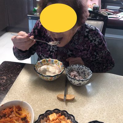 어머니가 한그릇 맛있게 다드셨습니다 .