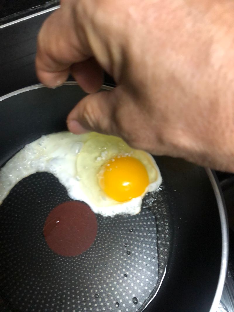 1)예열된 후라이팬에 기름을 두르고 달걀을 넣고 중불로 1분간 조리