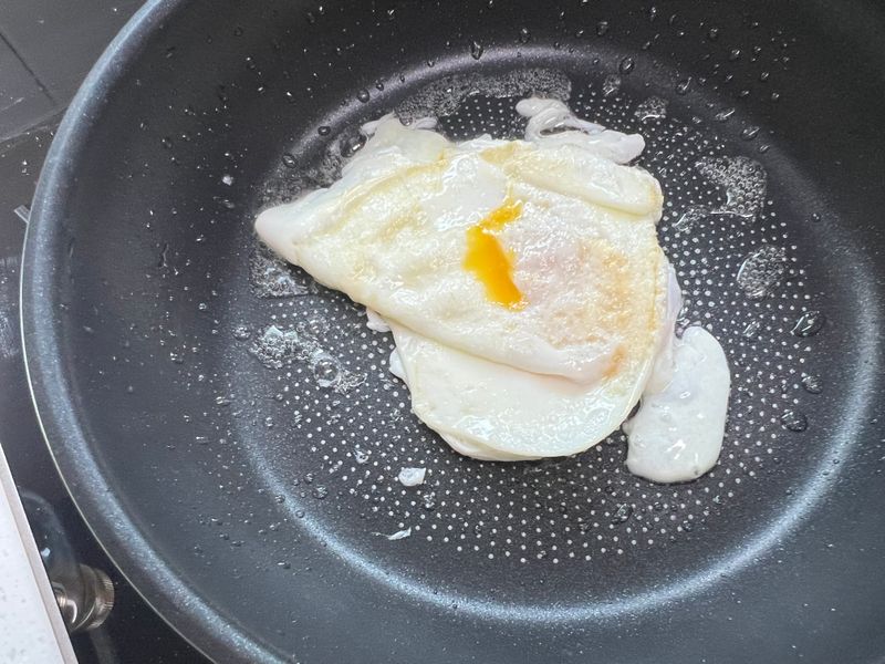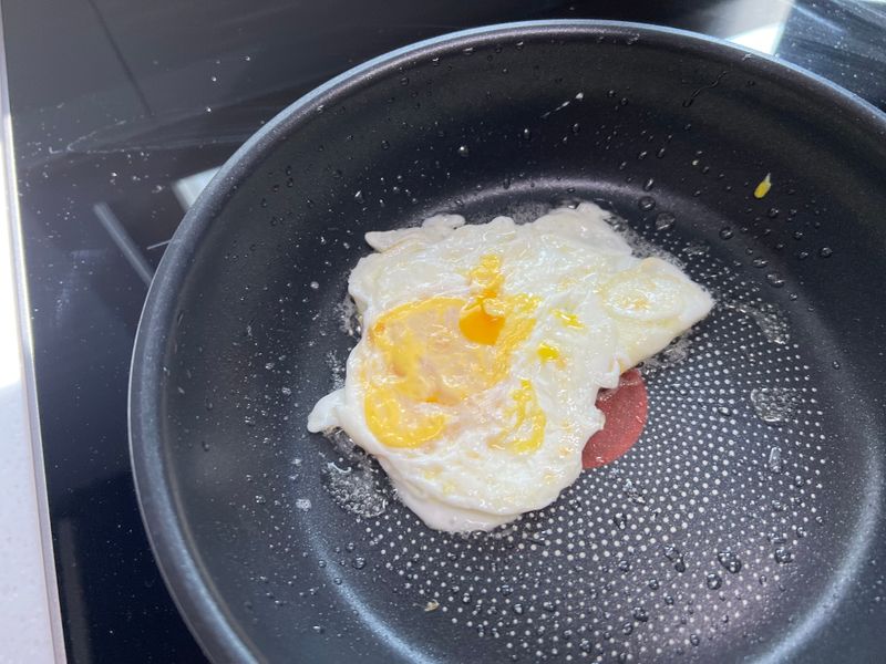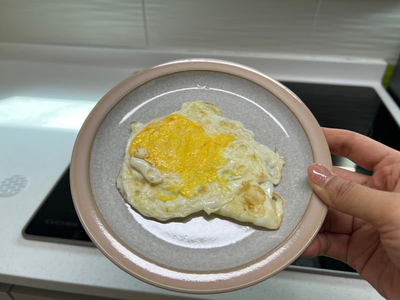 약 2분정도만 기다려주면깔끔하게 계란 완숙후라이가 완성됩니다!!!