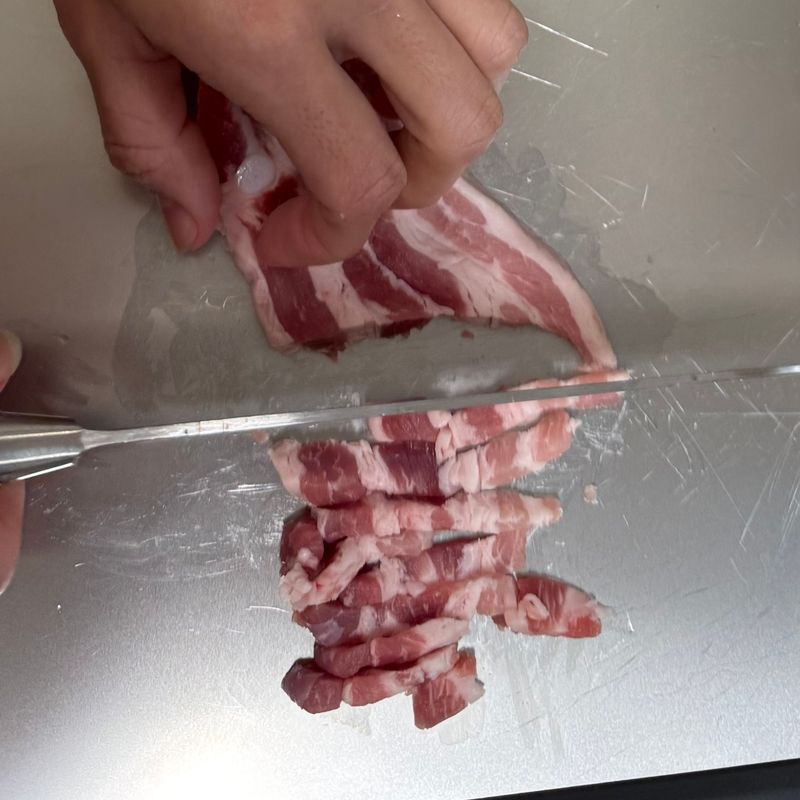 1. 삼겹살을 얇게 썰어요