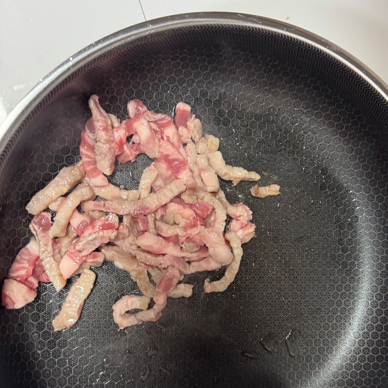 4. 삼겹살과 파를 같이 볶다가 소스를 넣어요