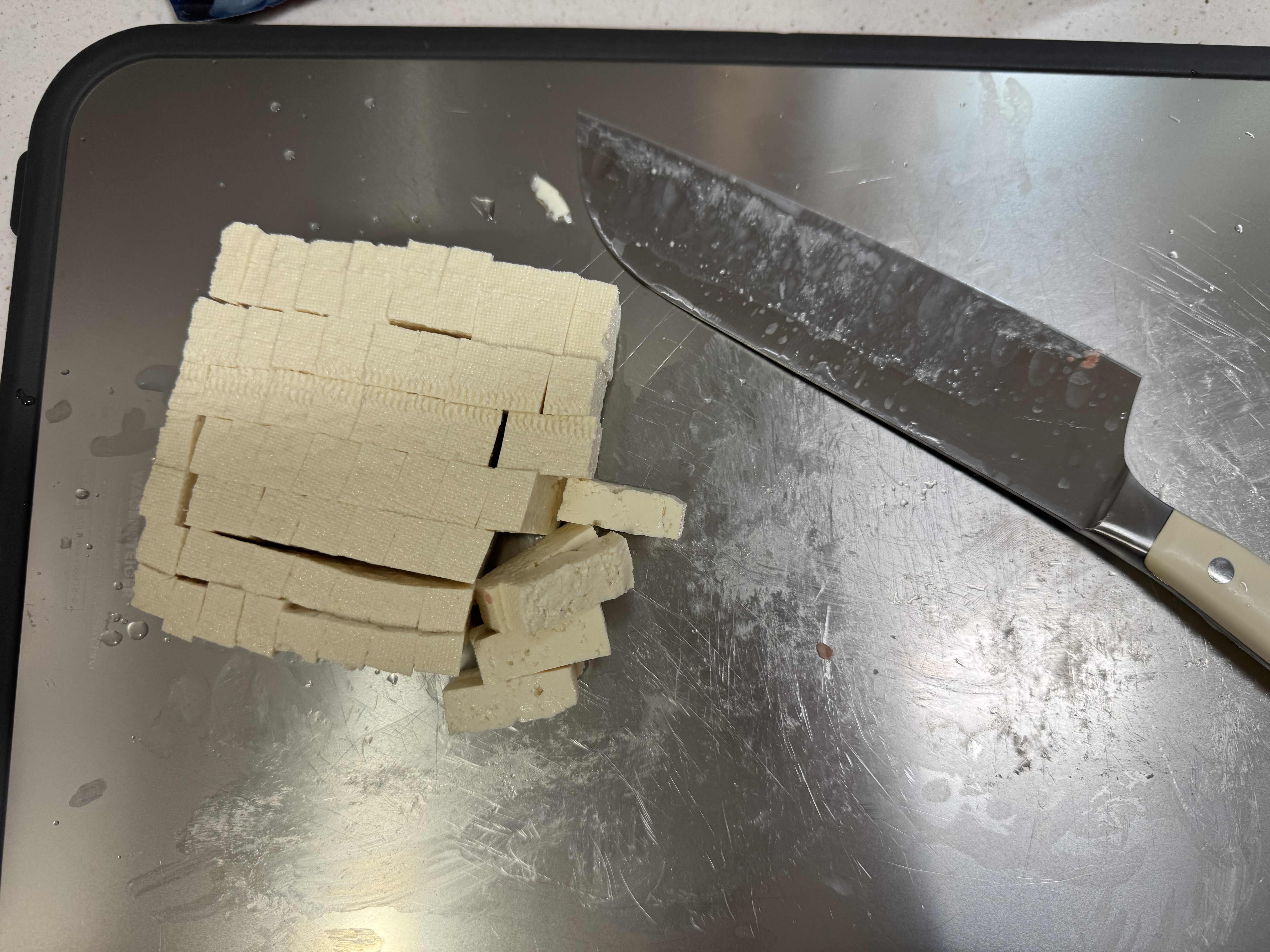 3. 두부를 먹기 좋은 크기로 썰어요