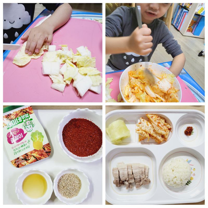 아이는 빵칼로 배추를 잘랐군요~ 넘 신나보여요!