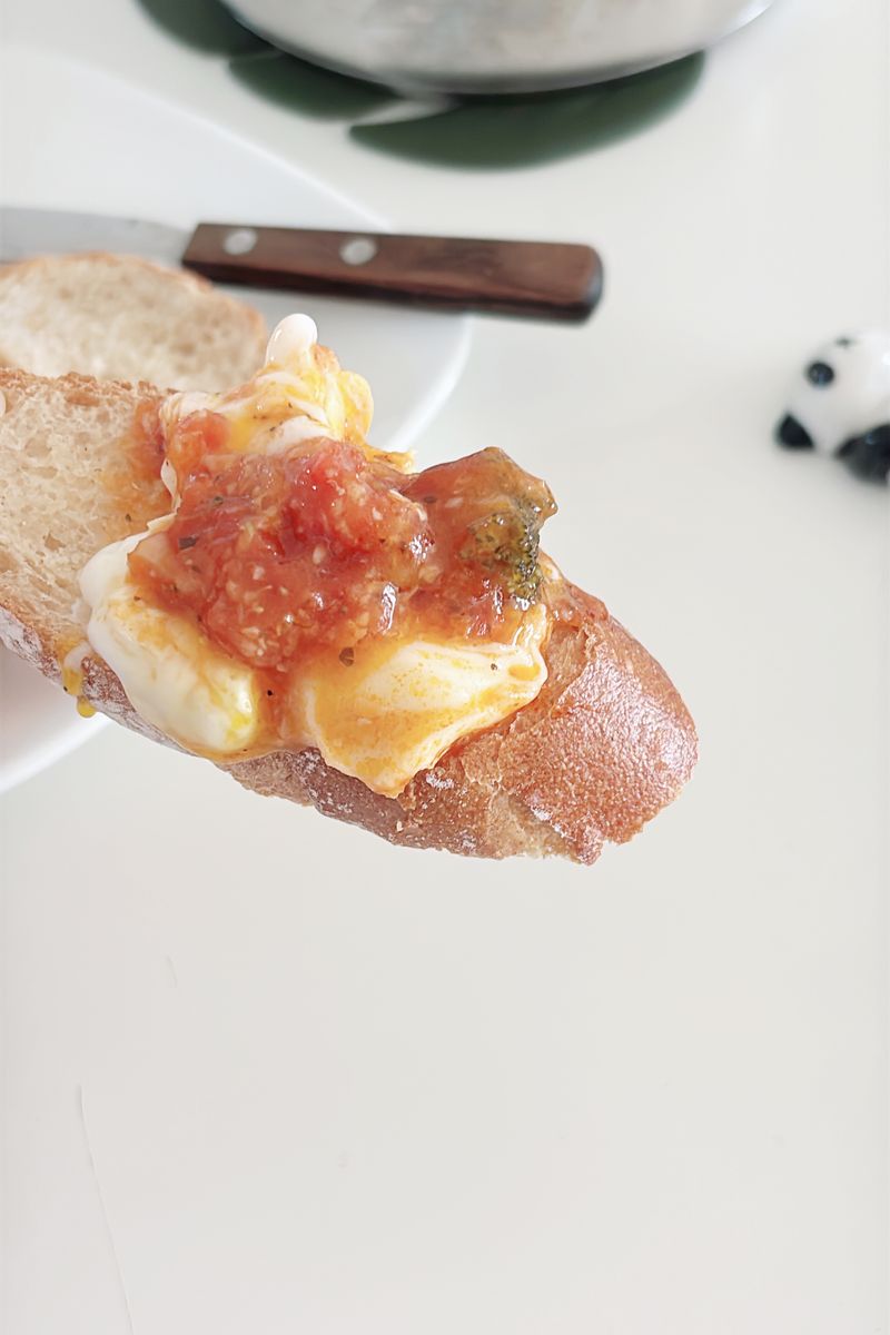 5️⃣ 기다리는 동안 에어프라이어에 바게트를 데우면 완성!
