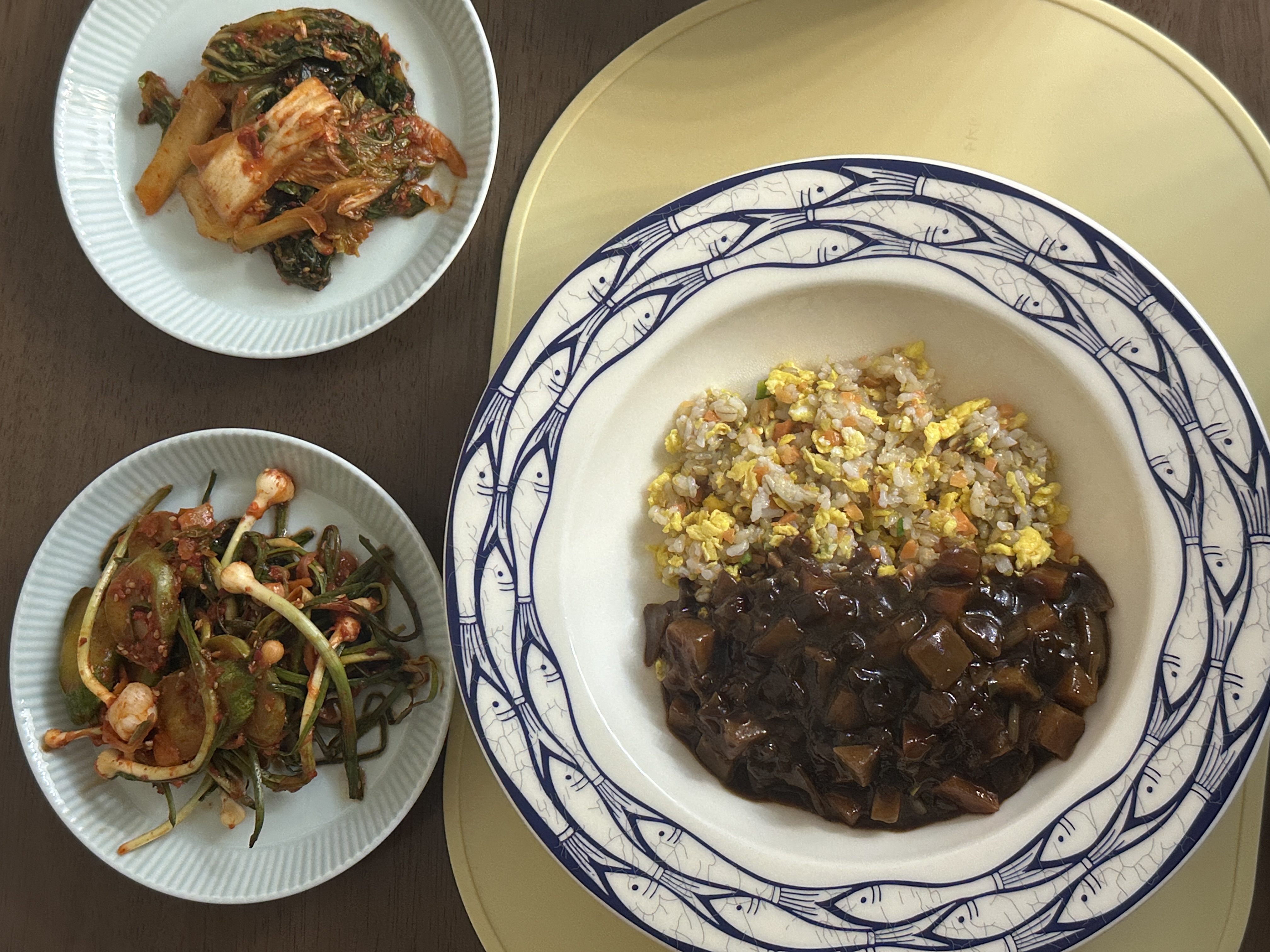 계란볶음밥에 짜장 만들어 먹었어요 우왕!! 우리집이 차이나타운!!! 힌끼 뚝딱! 맛있게 배딜비 벌었당!!
