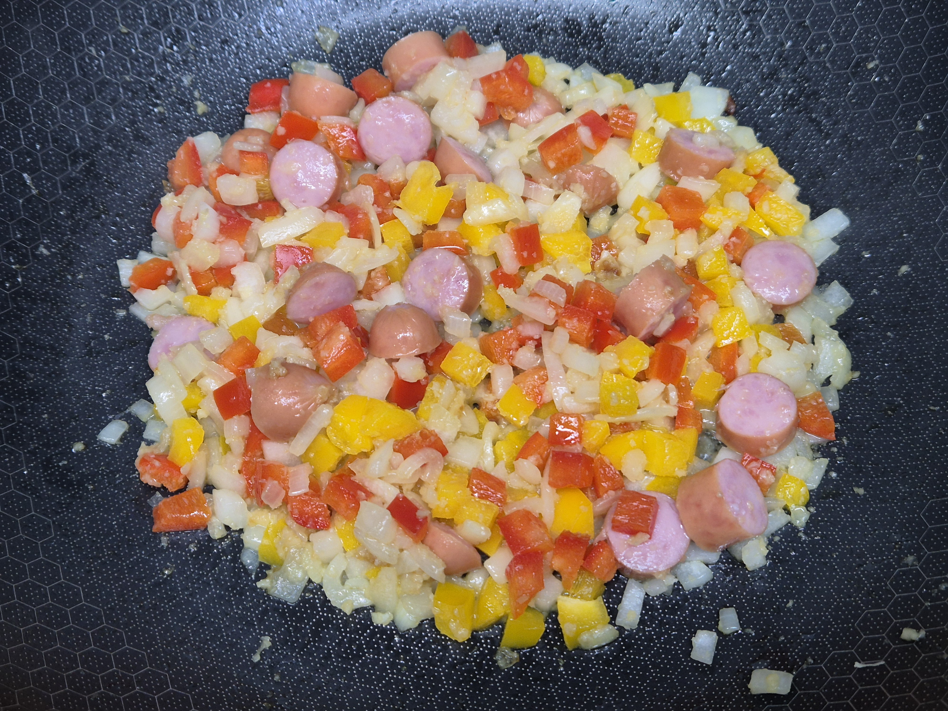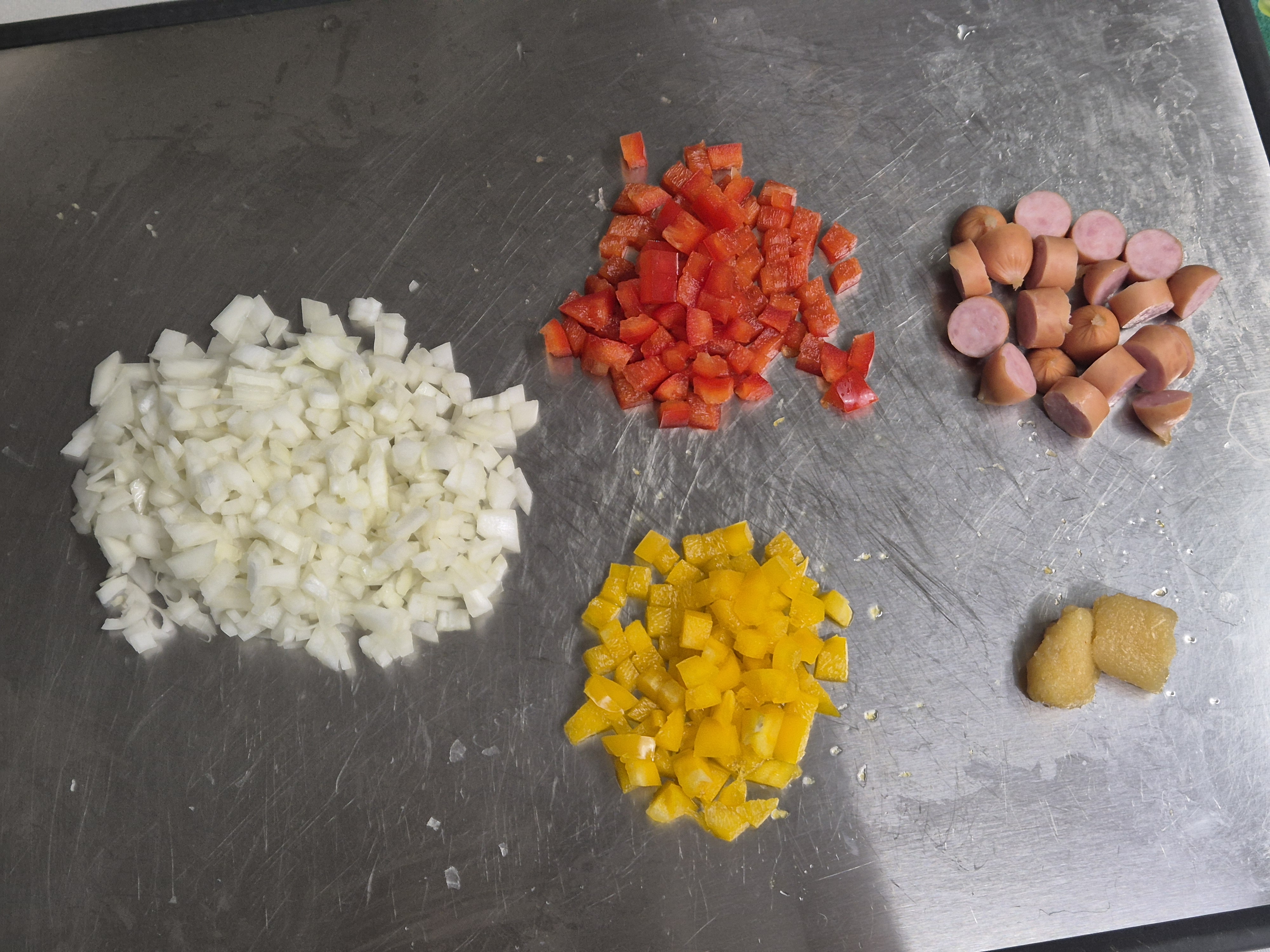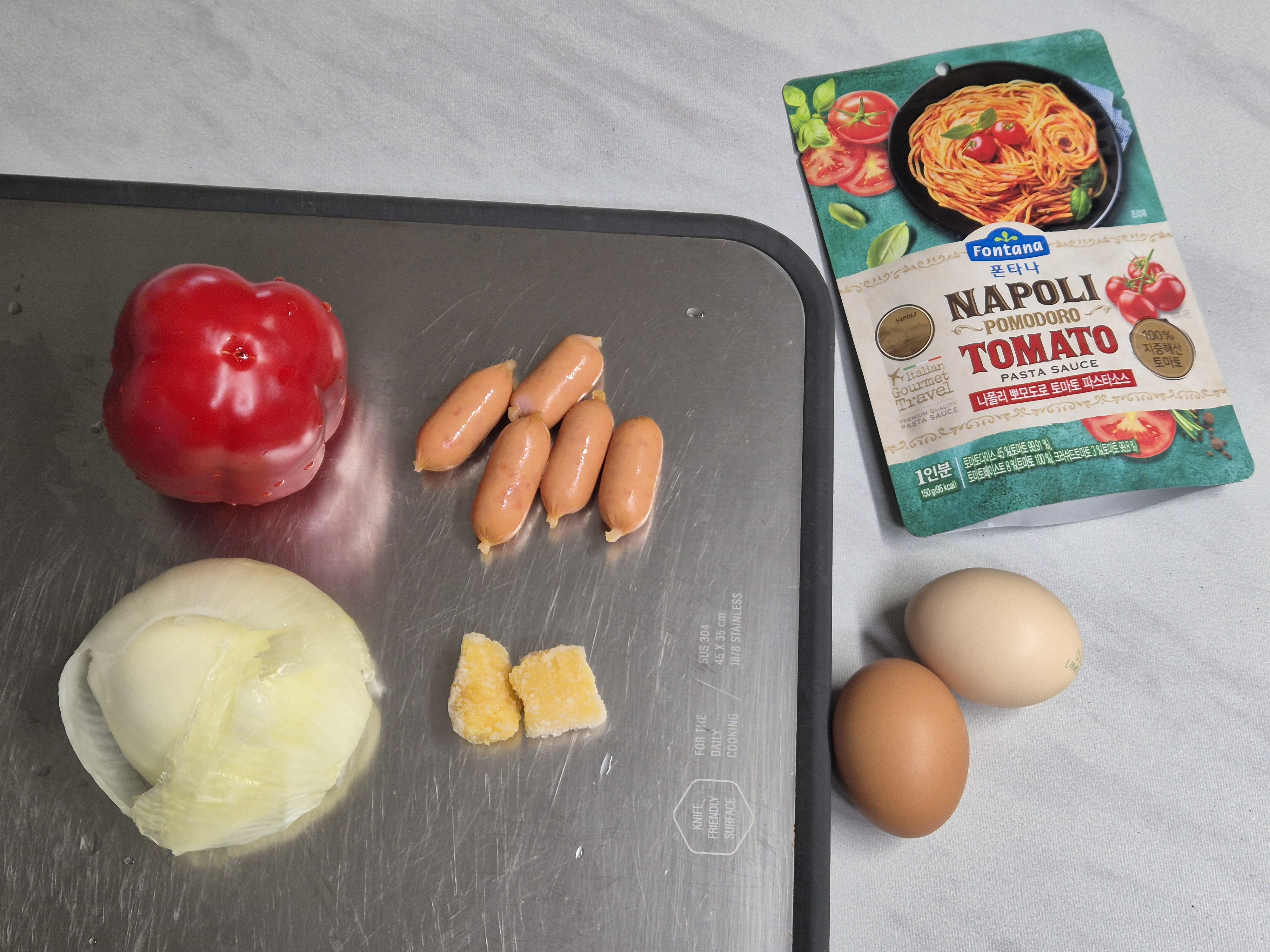 처음에는 레시피대로 빨간 파프리카만 준비했는데 재료 썰다 보니 노란 파프리카도 있으면 더 먹음직스러울 것 같아서 추가했어요!
