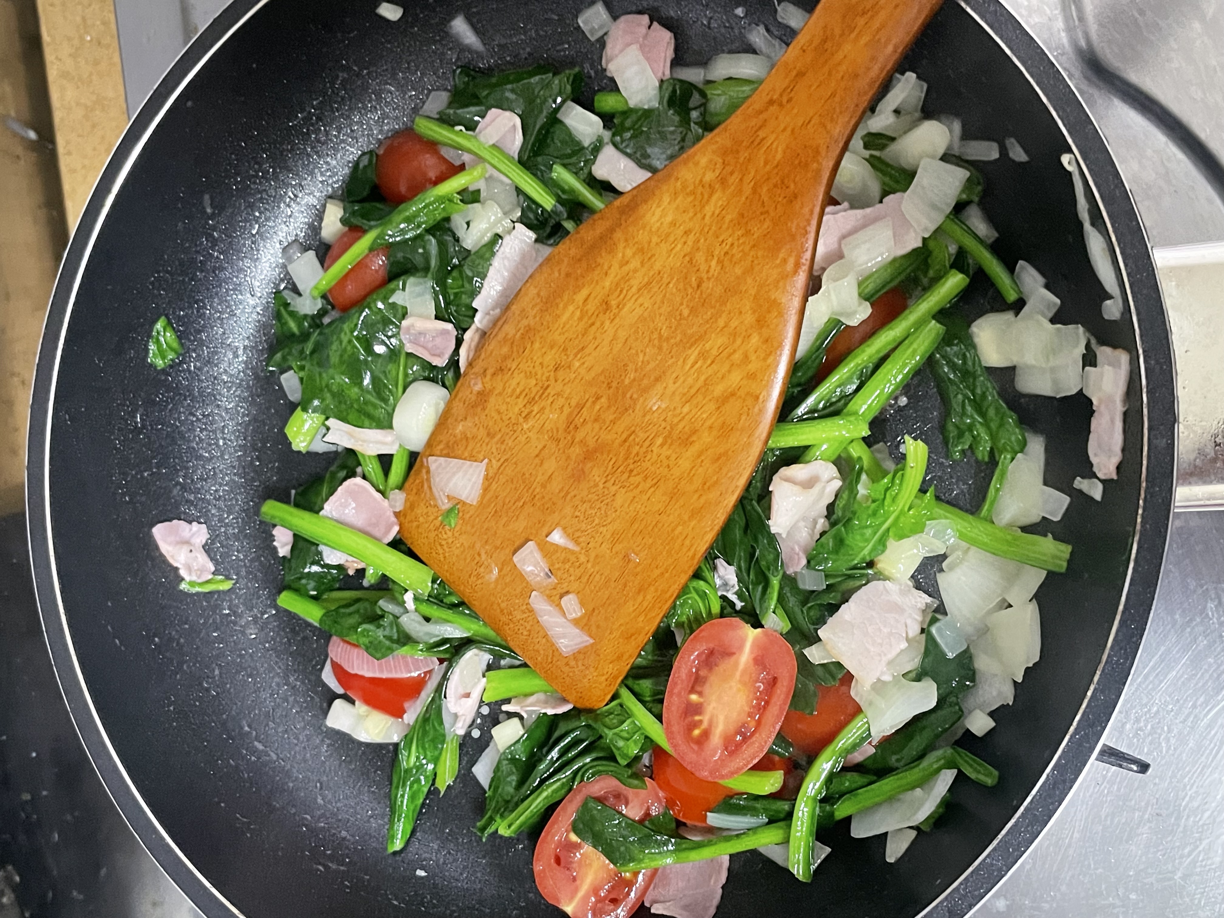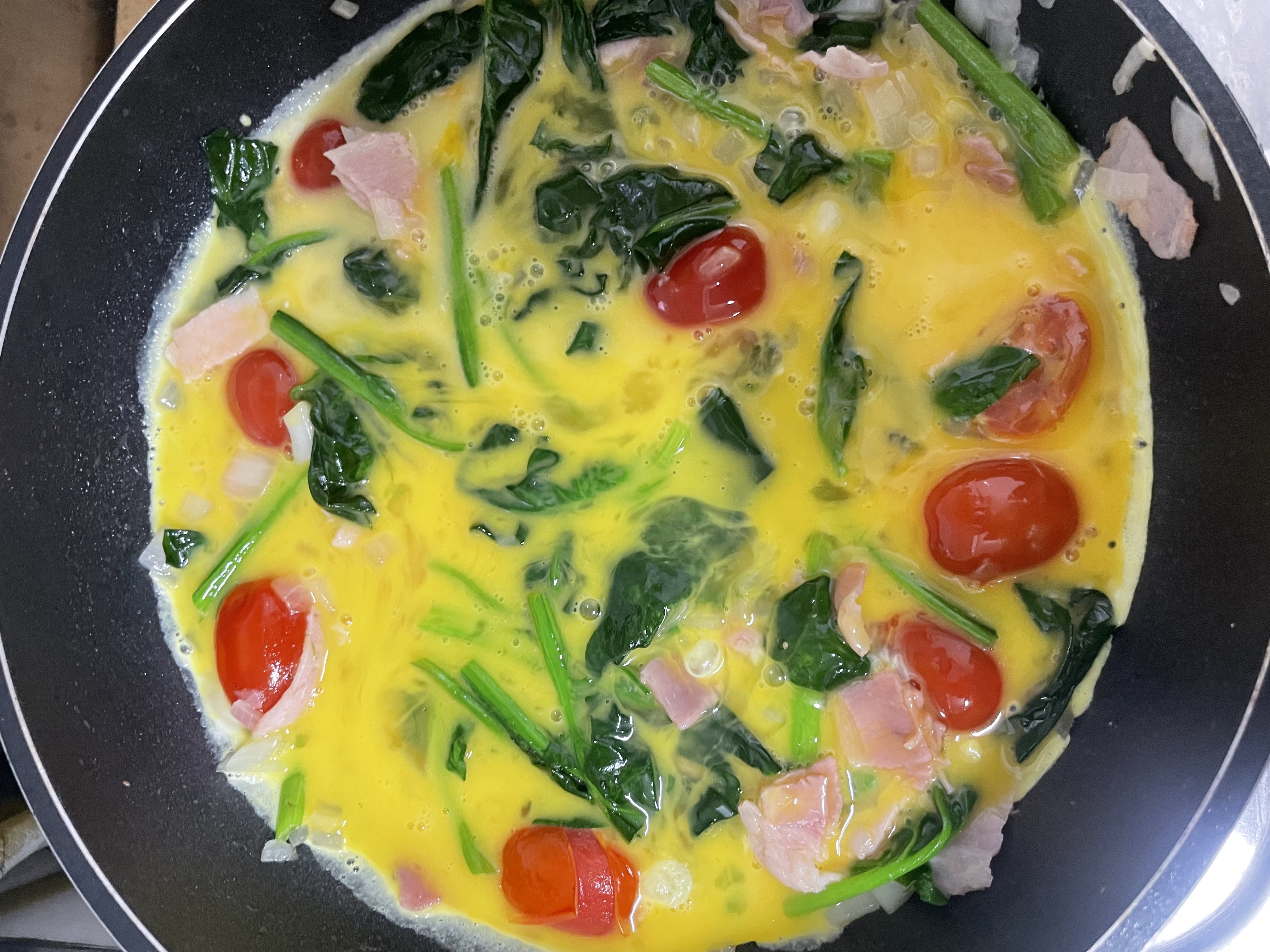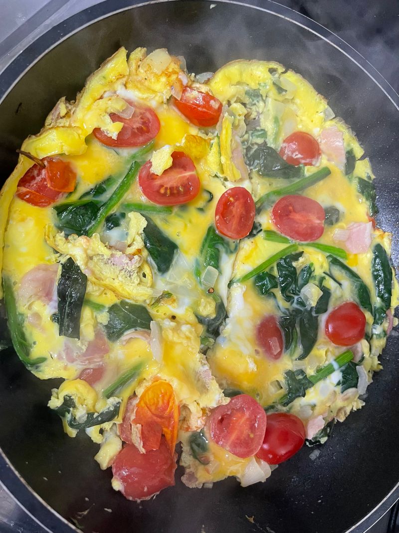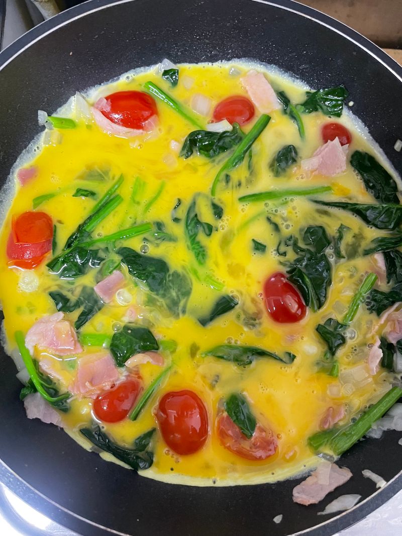 오랜만에 맛있는 것 먹고 싶어서 고민하다가 선택한 프리타타! 이제껏 한번도 접해본 적도, 먹어본 적도 없는데 외국의 계란찜 느낌이라길래 색다른 맛일 것 같아 해봤어요 ㅎㅎ 베이컨과 시금치와 양파 그리고 방울토마토까지 기본 재료들 넣으니 건강하고 담백한 한끼로 즐기기 좋았습니다. 채소 볶을 때 버터를 넣으니 향이 확~ 살아나던걸요! 재료 볶다가 계란만 풀어서 덮어주면 되니 조리시간도 짧고 맛은 좋고 …👍 간단한데 맛있으니 앞으로 자주 해먹고 싶은 느낌 ~