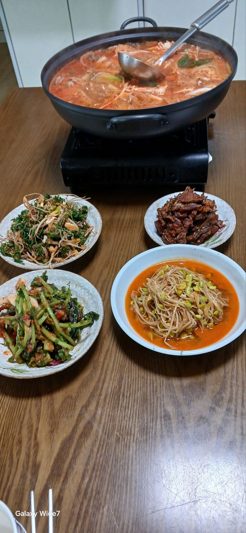 냉이무침, 콩나물무침, 열무김치등 나물들로 한상 차렸어요. 봄에는 나물들이 평소보다 더 맛있는거 같아요