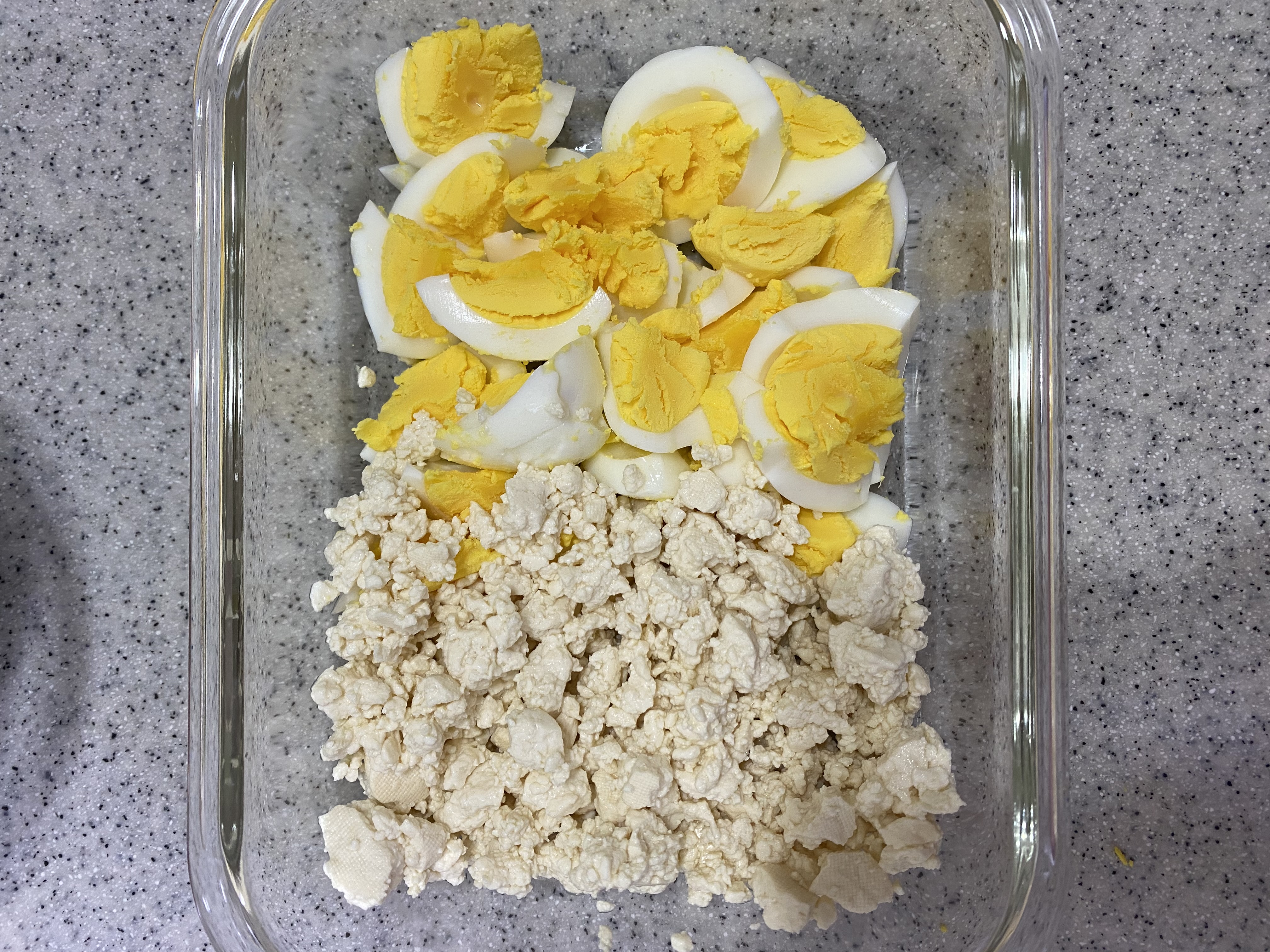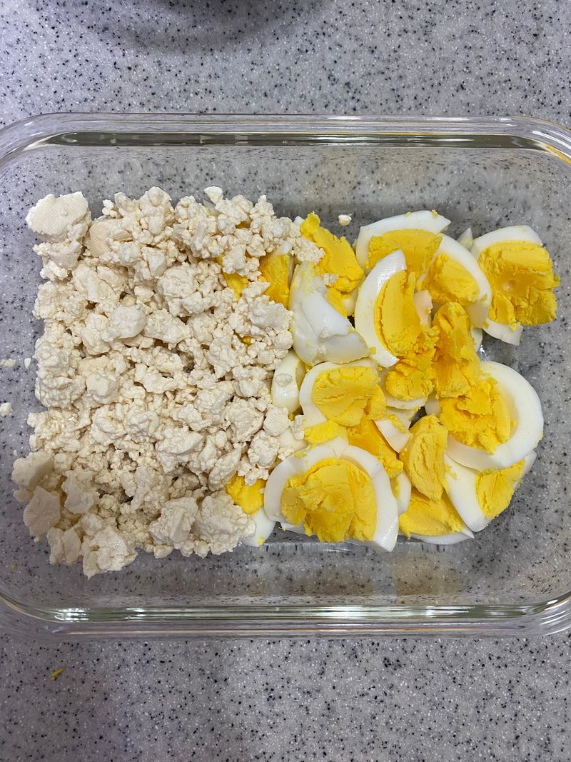 으깬 두부로 샐러드를 만들면 아침에 가볍게 먹기 좋아요
