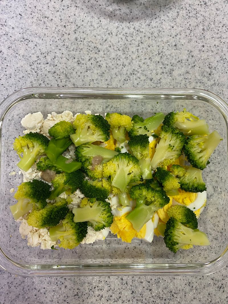 재료는 계란3개와 두부 반모 , 브로콜리 1송이