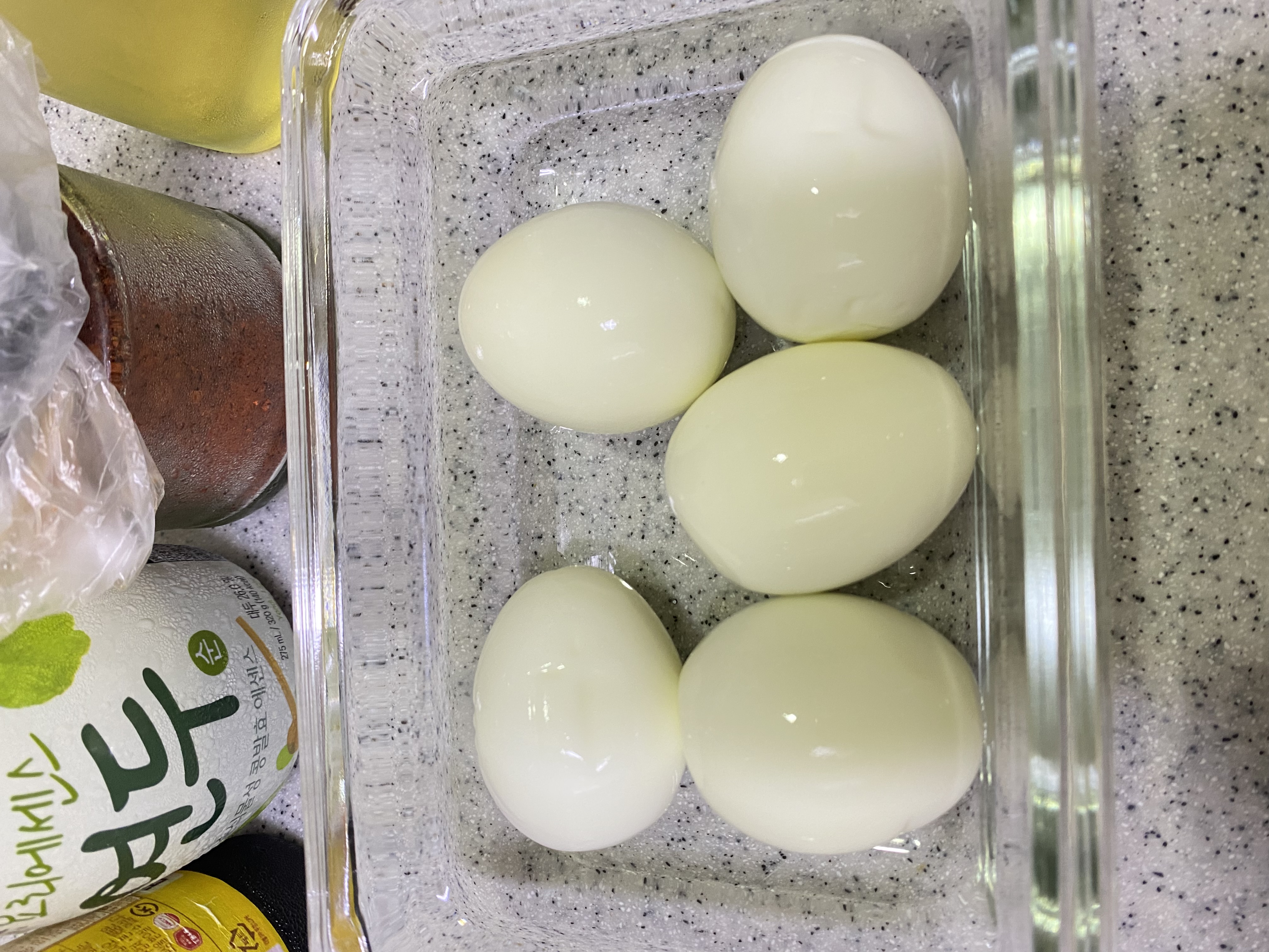 계란은 반숙이나 완숙으로 삶아서 적당한 크기로 잘라주고