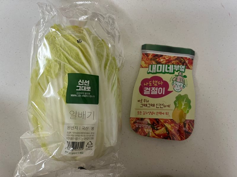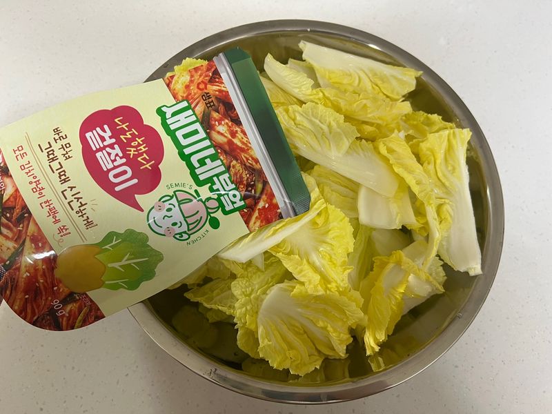 저는 집에 알배추만 있어서 알배추 단독으로 넣었지만,