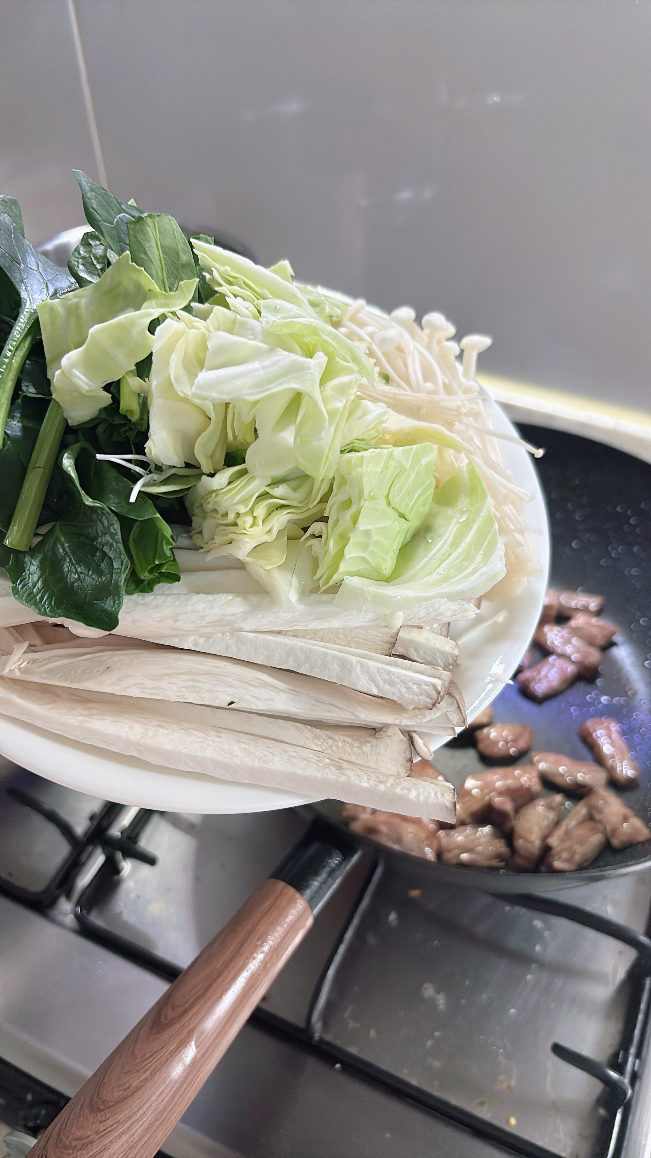 - 양배추, 애호박, 시금치, 팽이버섯, 소고기