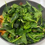 돼지고기와 함께 볶아 고소한 시금치 요리
